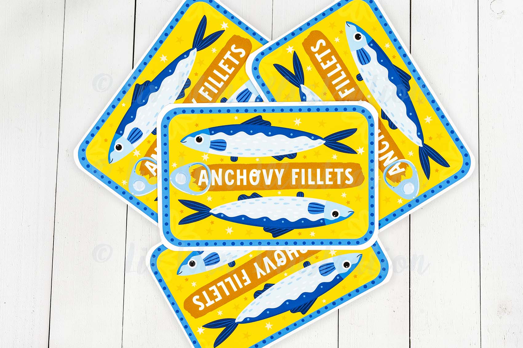 This Anchovies Postcard is A6 (10.5 × 14.8cm) in size and is printed on a beautiful heavyweight fine-art textured paper by myself, which provides beautiful colours, contrast, texture and is a joy to write on. This is a die-cut postcard which I have expertly cut out myself using a commercial plotter cutter. These are really expensive but ensure the lines are cut perfectly and everything is exactly the same size.