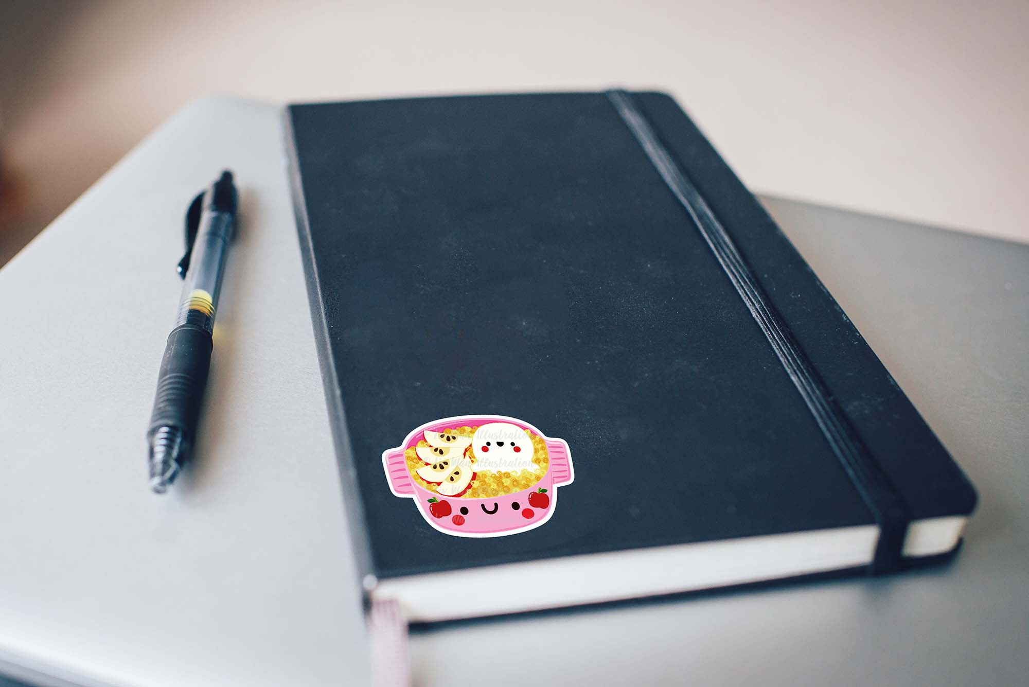 This Apple Crumble Sticker is printed on high-quality, coated vinyl stickers that are water-resistant and fade-proof.