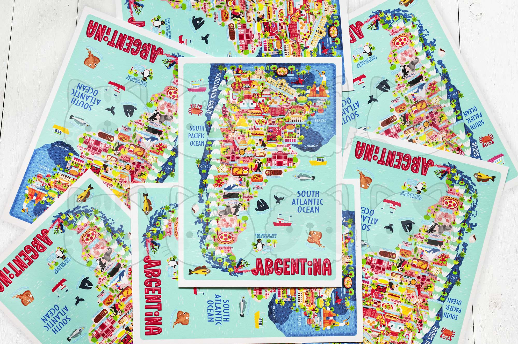 If you are collecting beautiful, unique, and special postcards, this Argentina map postcard should definitely be added to your collection. I’m now doing a wholesale service, so if you are a retailer and you’re interested in my postcards, prints, or any of the other products I have listed on my website, please contact me anytime.
