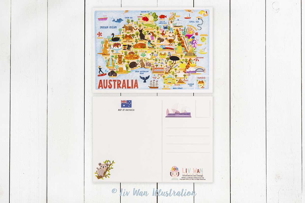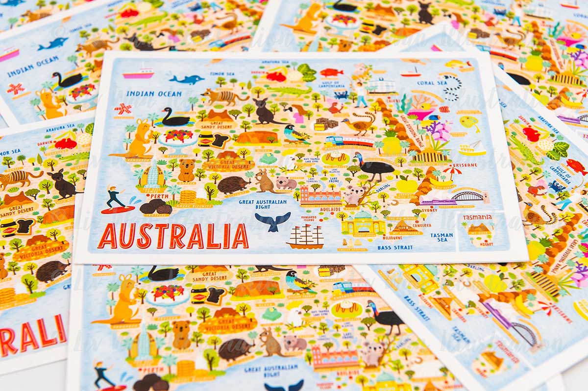 If you are collecting beautiful, unique, and special postcards, this Australia map postcard should definitely be added to your collection. I’m now doing a wholesale service, so if you are a retailer and you’re interested in my postcards, prints, or any of the other products I have listed on my website, please contact me anytime.