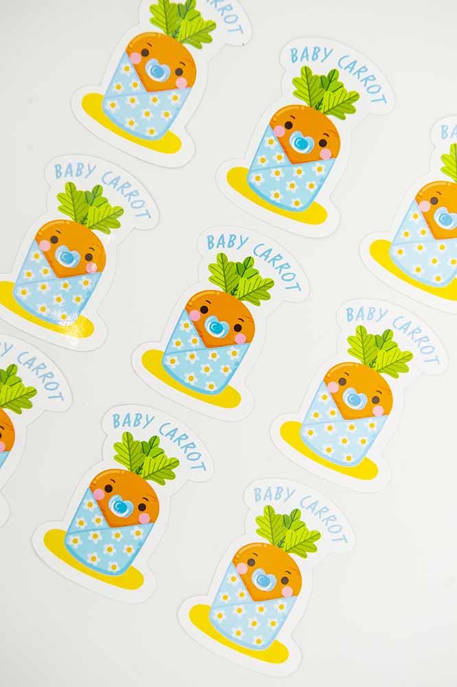 I love a good food pun as much as the next person so I’ve created a whole A-Z of food puns including this Baby Carrot Food Pun Sticker. These were a lot of fun to create and I’m sure you’ll love them as well.