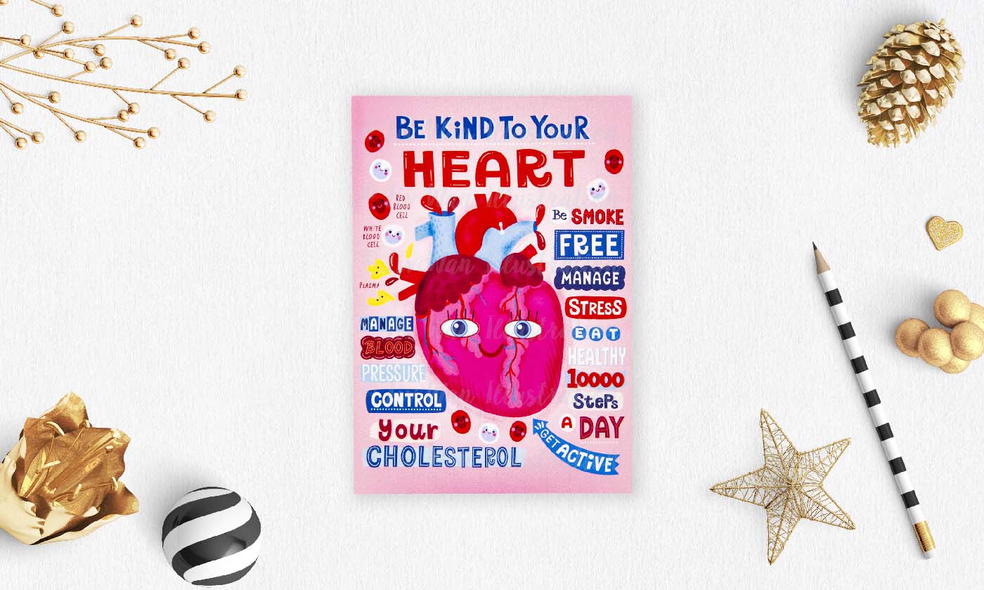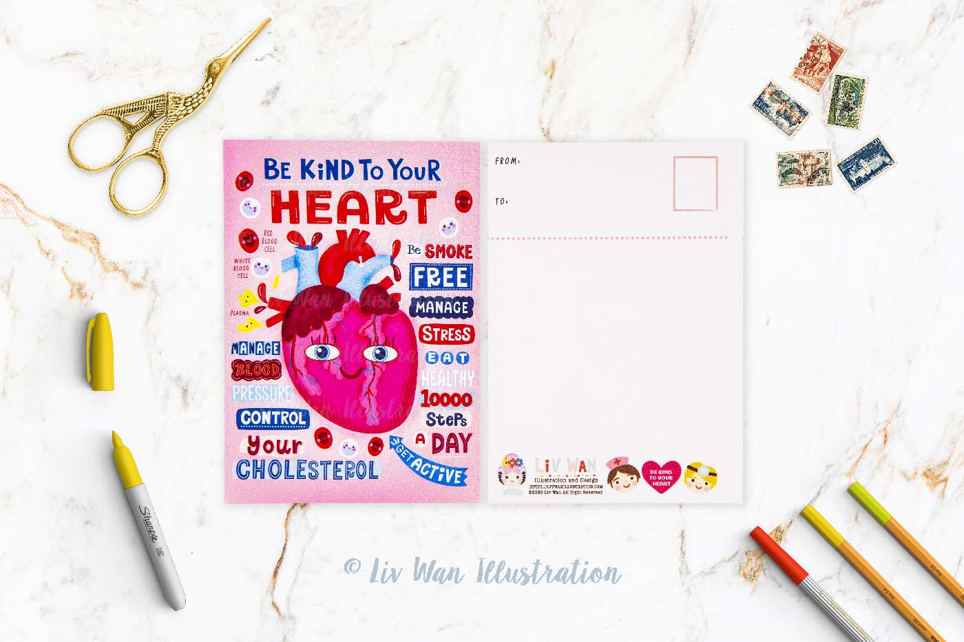 You can buy a poster version of this Be Kind To Your Heart postcard here