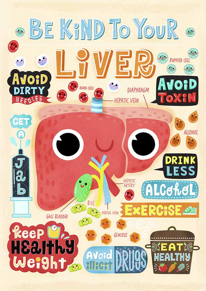 You can also buy a postcard version of this Be Kind To Your Liver poster here