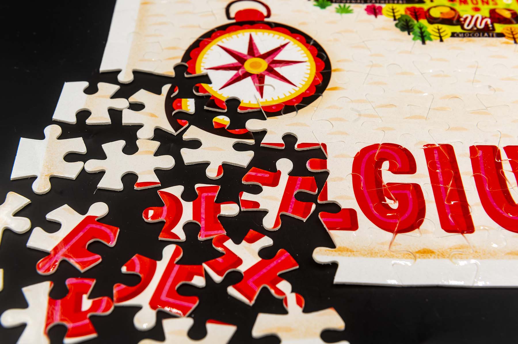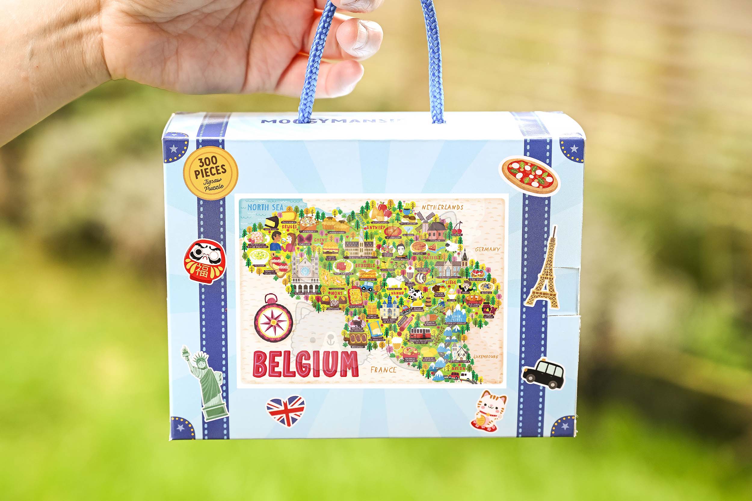 This Belgium map puzzle comes supplied in a cute custom-made box in the shape of a suitcase.