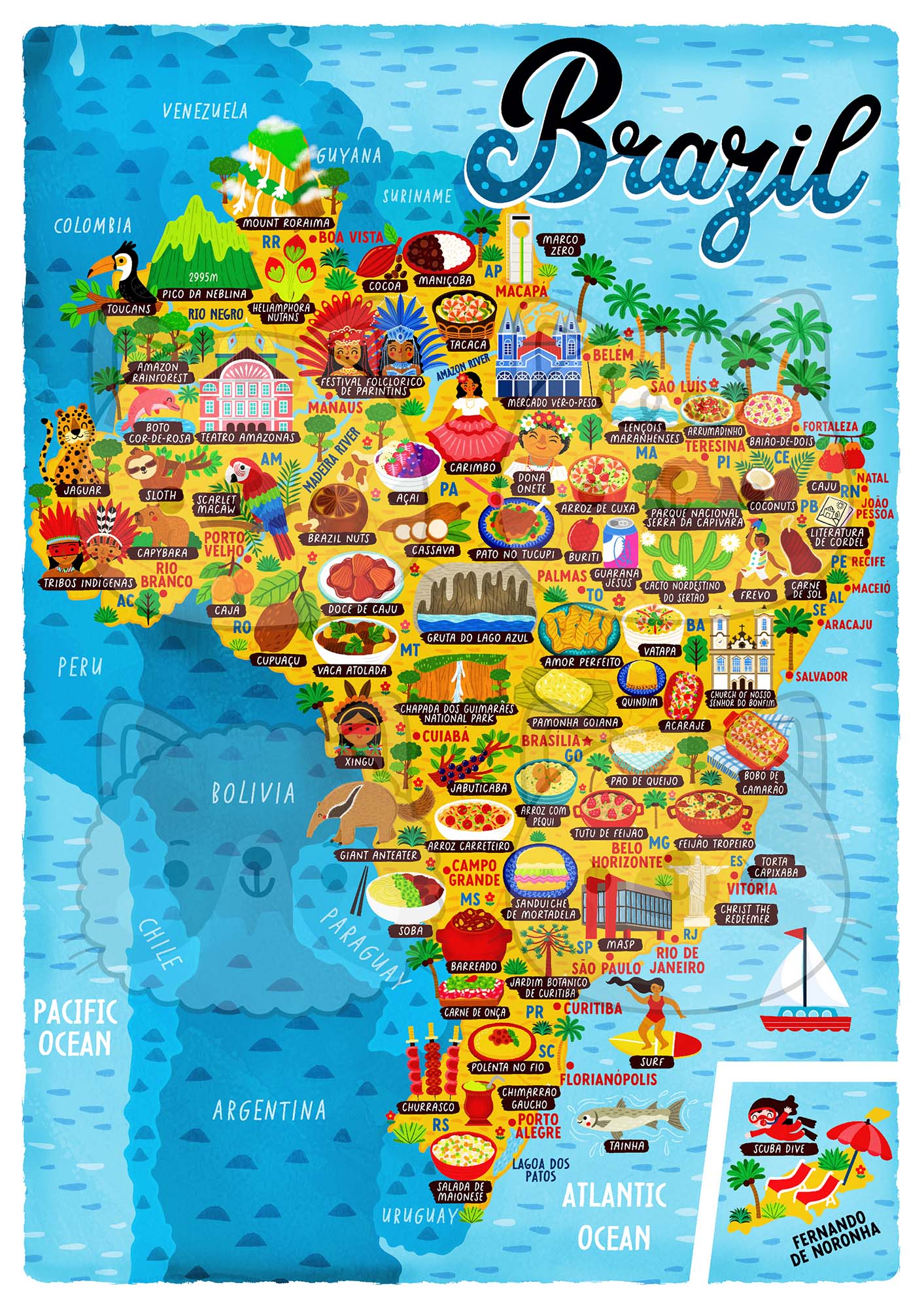 This Brazil map poster was really fun to create. I haven’t been to Brazil so research took a really long time for this and I requested lots of help, but here it is.