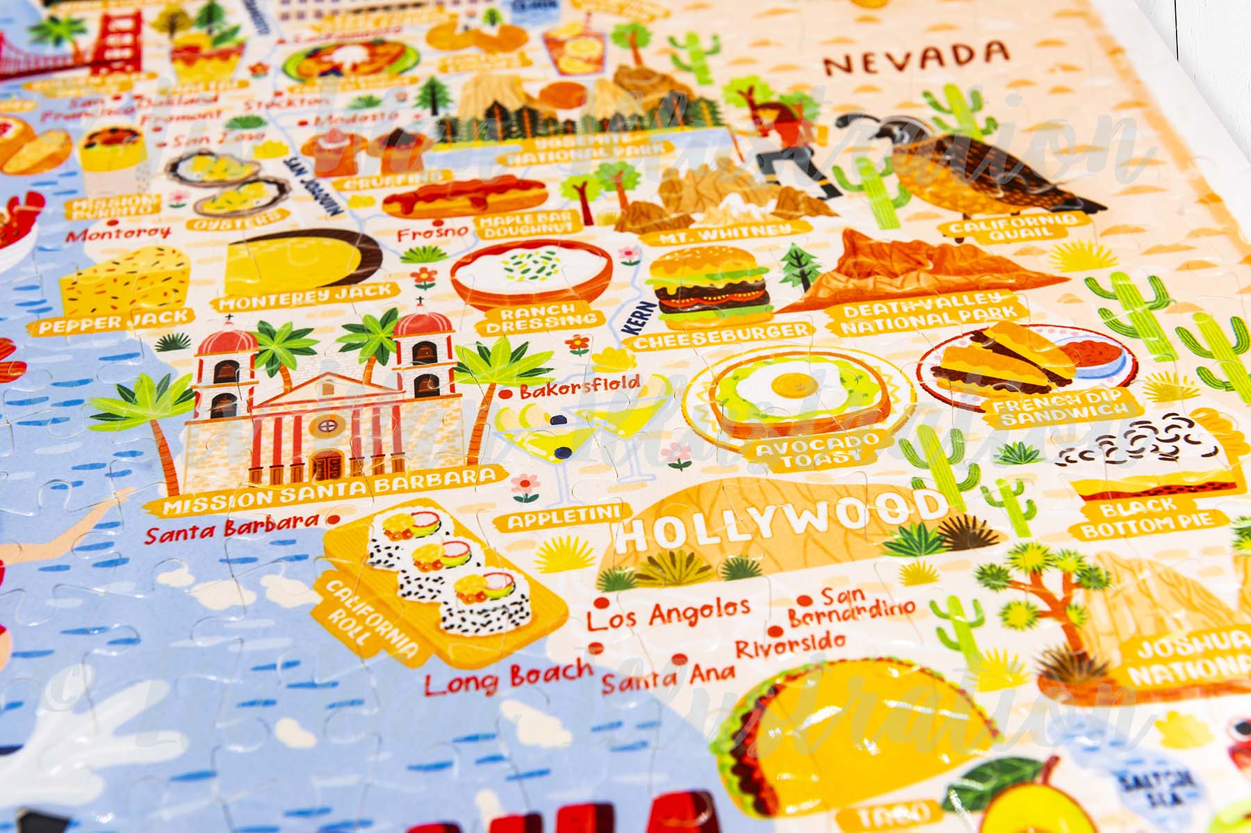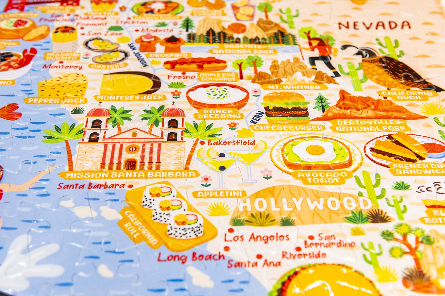 As with all of my maps, there are absolutely tonnes of detail in this California Map Jigsaw Puzzle. There are people, buildings, cities, animals, food, and many other things.