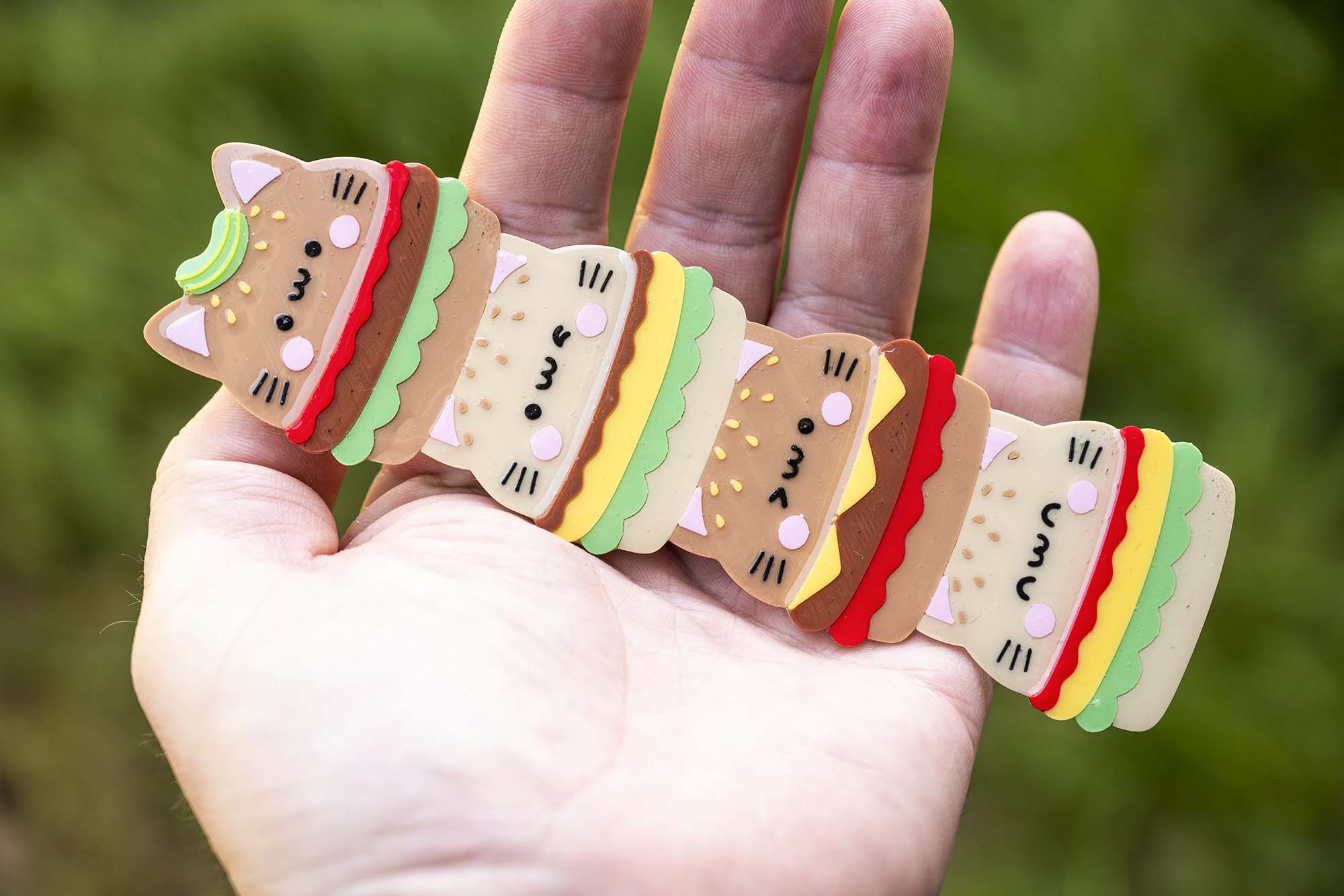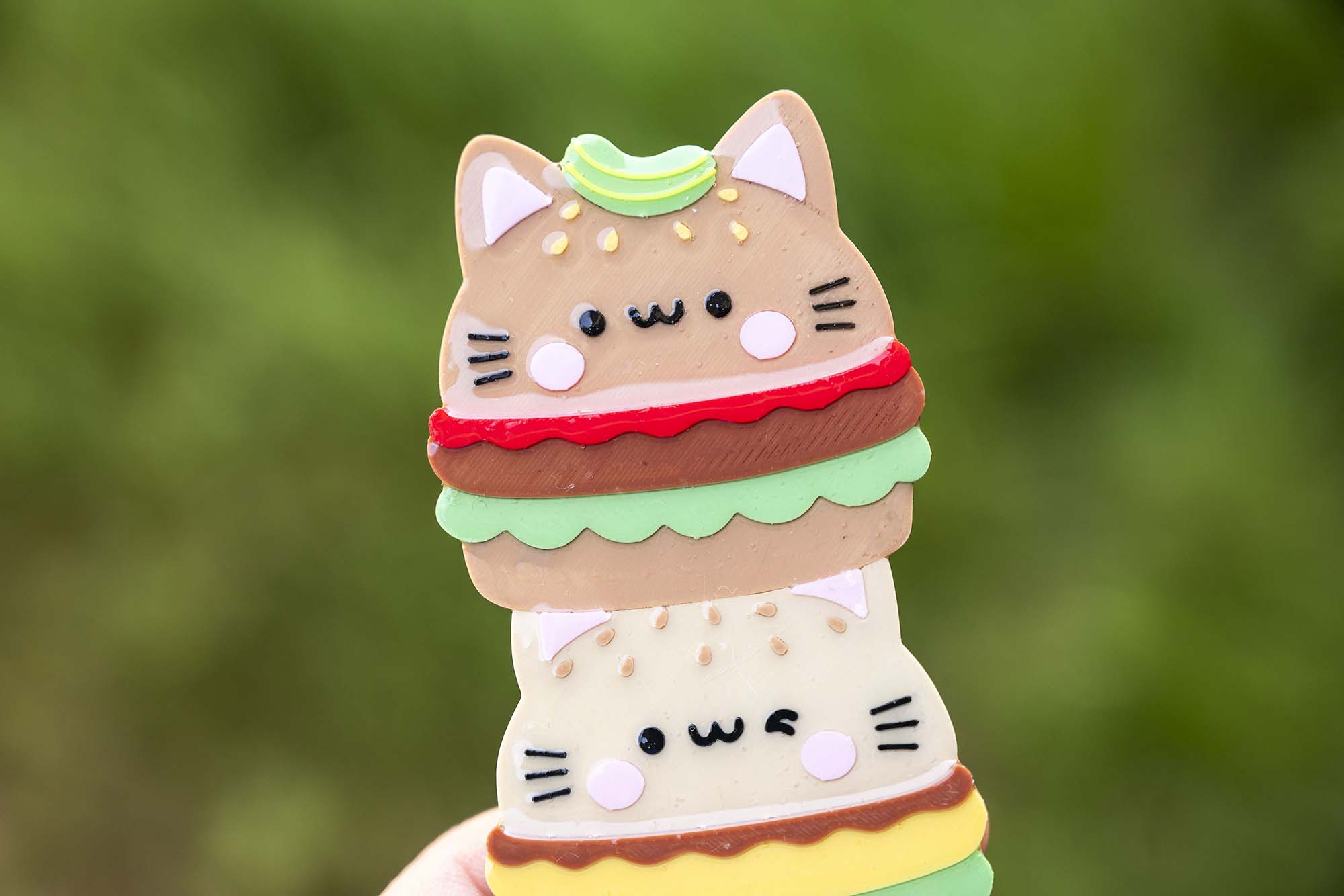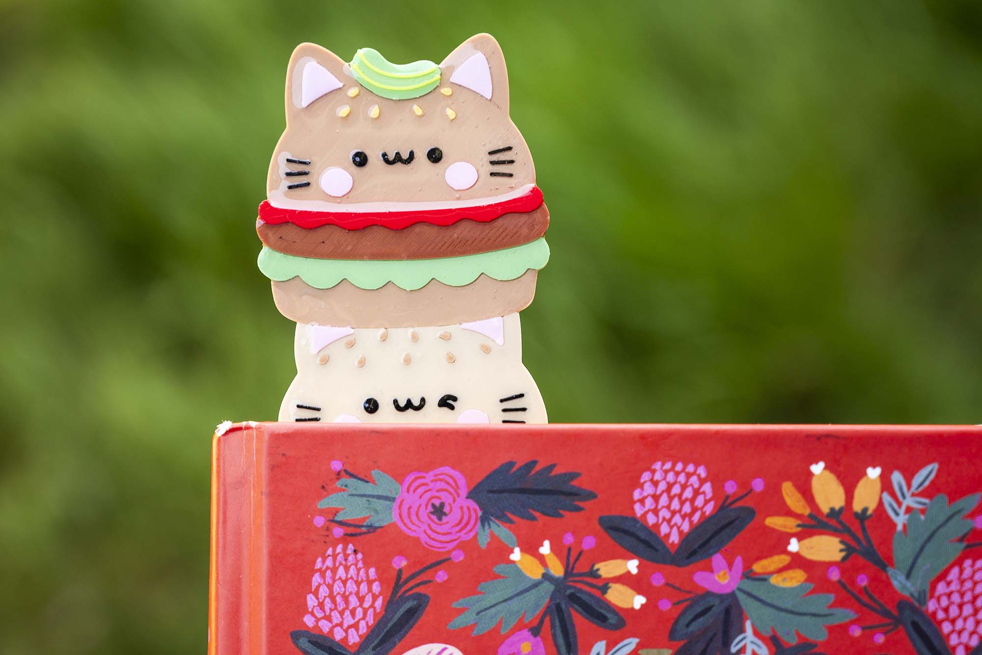 As you know, we love our cat, we love super cute things and we love our food, so naturally we had to make a cat burger. As mentioned, we printed this ourselves with a top-of-the-range 3d printer and then we coat in UV resin to protect the surface. Once cured, the resin is completely safe and adds a special sheen to our bookmarks.