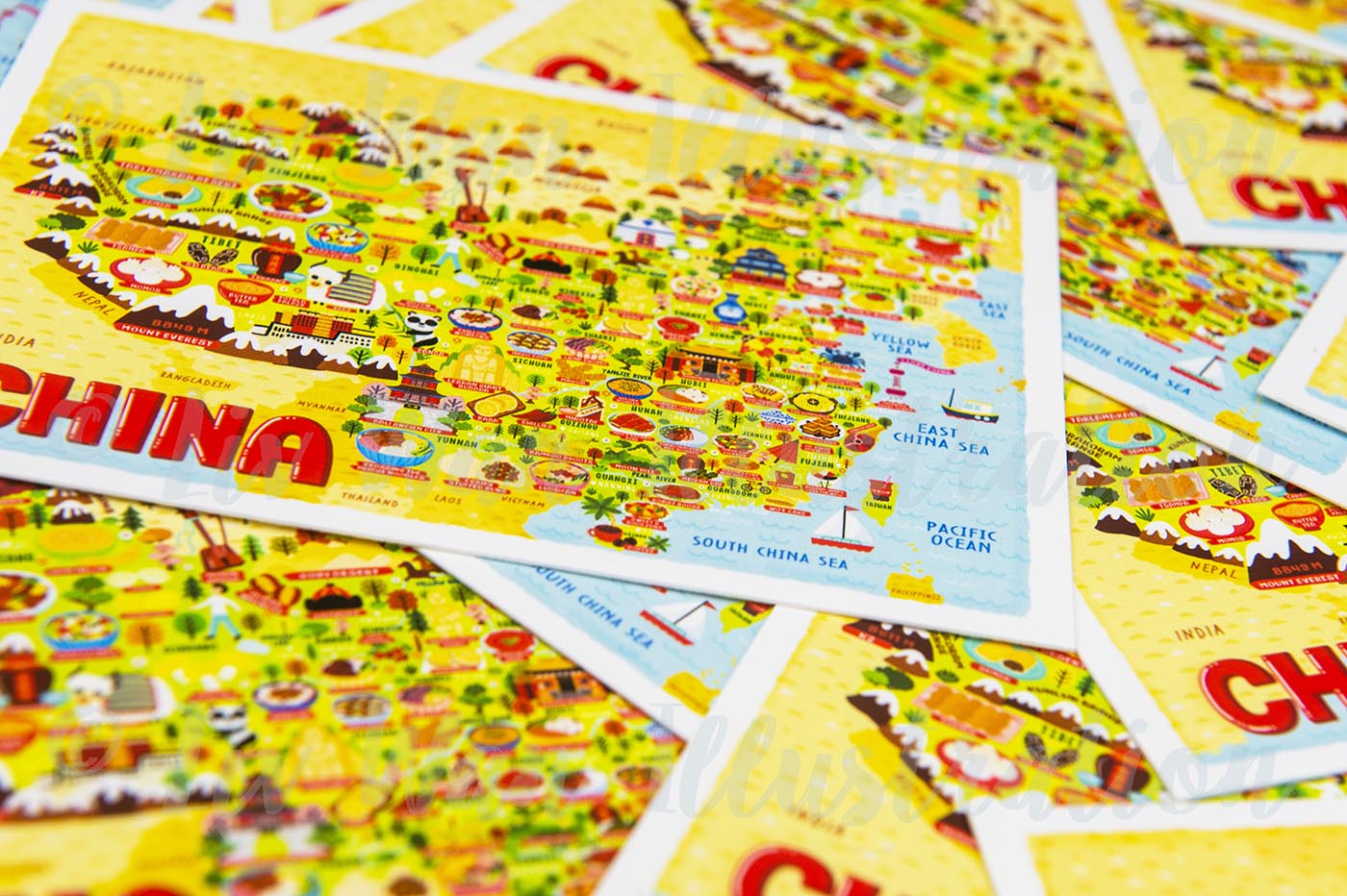 This China Map Postcard is 10.8 x 14.4cm in size. This China Map Postcard can be bought as a single card or in multiples. It is printed on fine art cotton rag paper with a matte finish, by myself, here in the UK. This is an exceptionally high-quality card with beautiful colours and it’s lovely to write on.