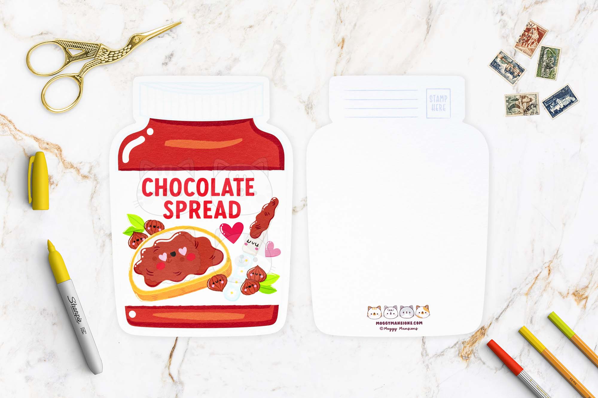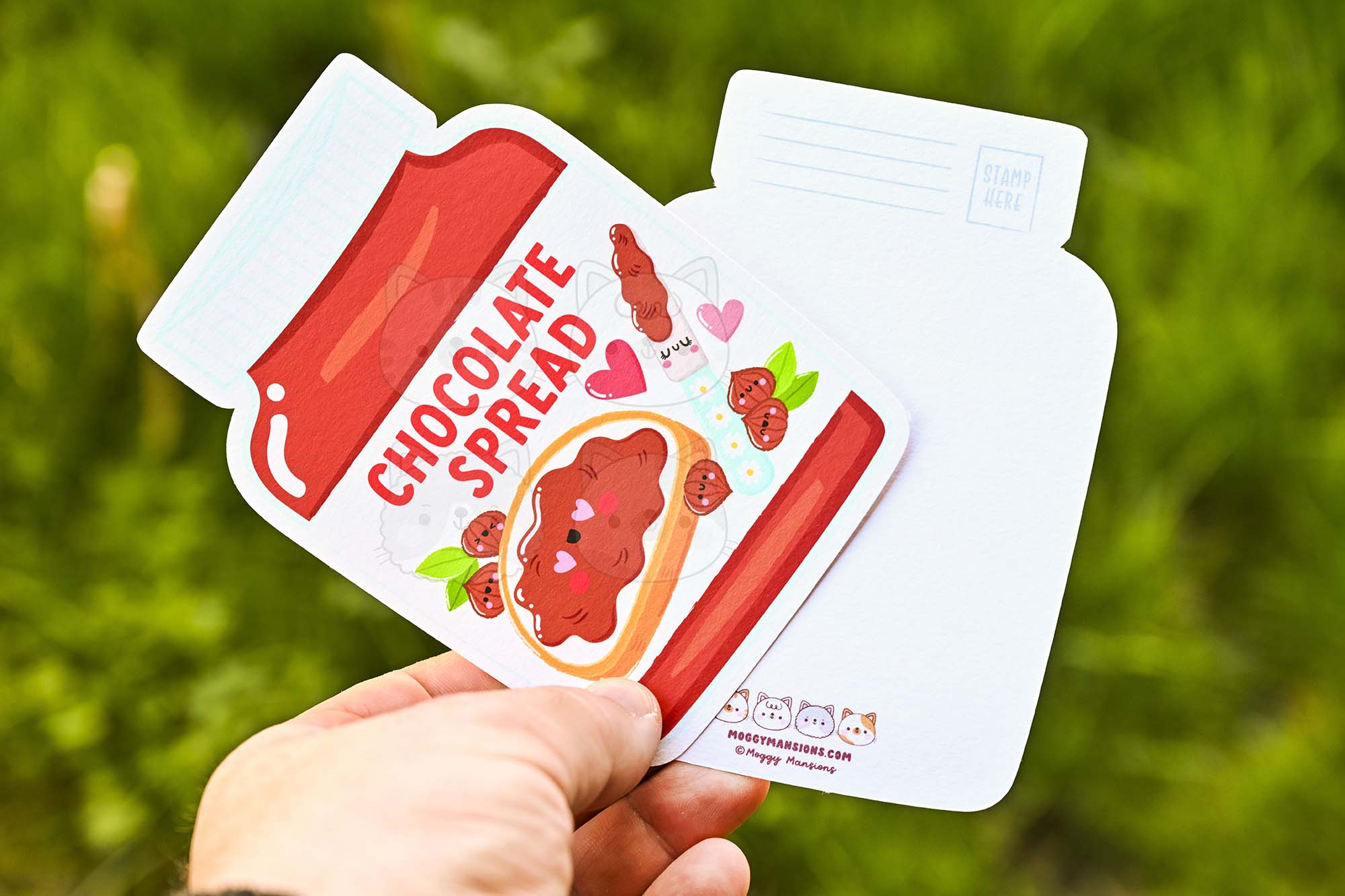 Introducing our Chocolate Spread Postcard. In 2024 we created a collection of really fun die-cut shaped pantry postcards and we’ve wanted to extend this collection for some time, so beginning of 2026 this is one of a few new postcards for this collection.