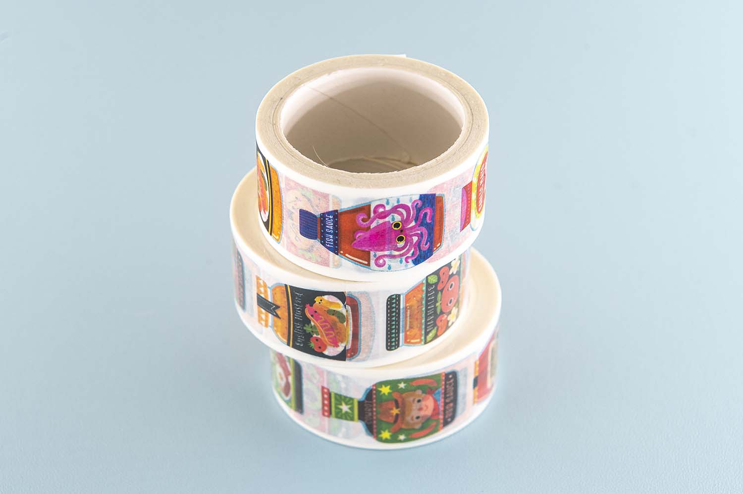 These are designed by myself in the UK but manufactured abroad. This condiments washi tape has a semi-permanent adhesive coating that allows for some repositioning.