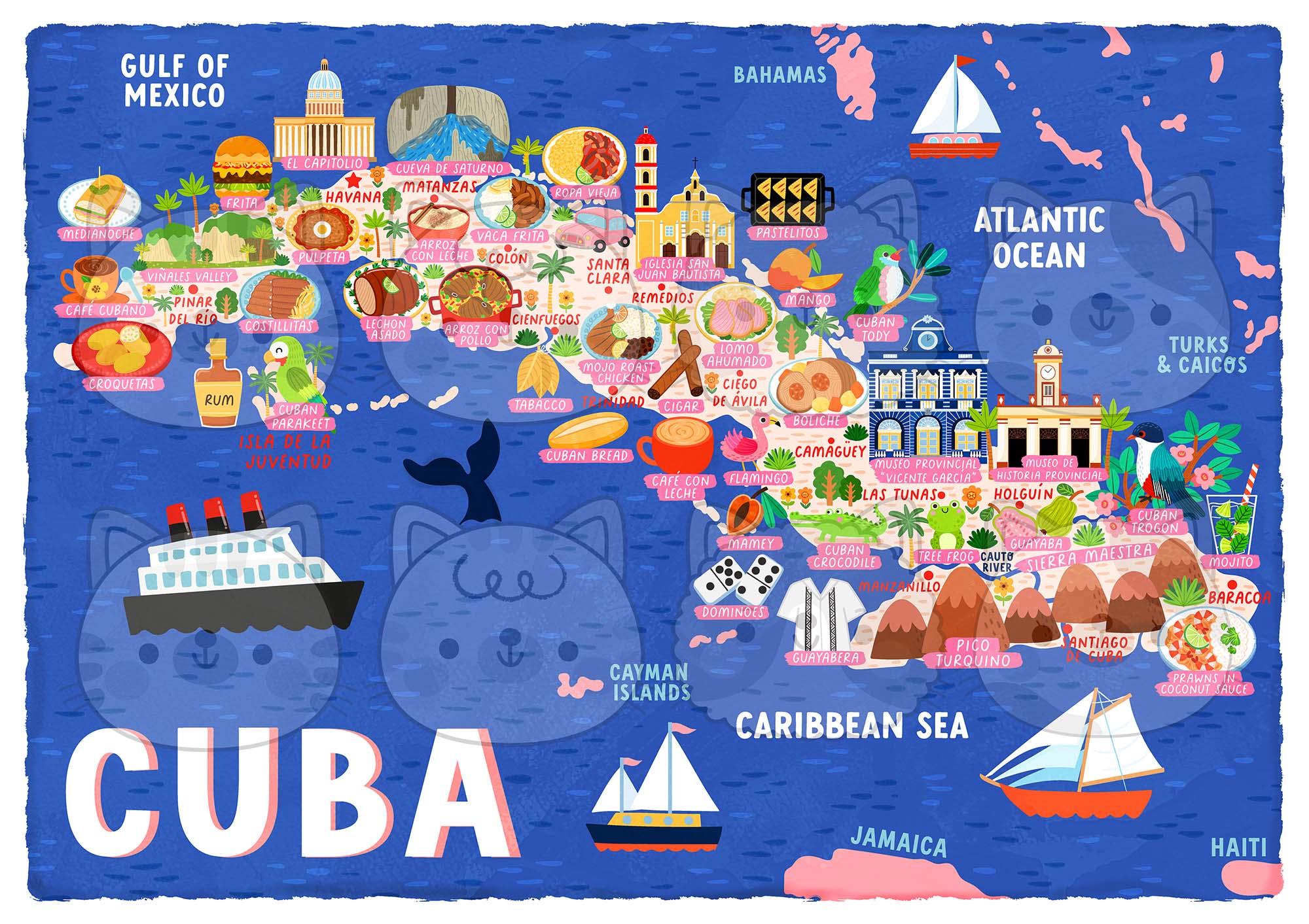 Cuba map poster. Cuba is such an incredible country with some of the most interesting and exciting cultures, sights and foods anywhere in the world.