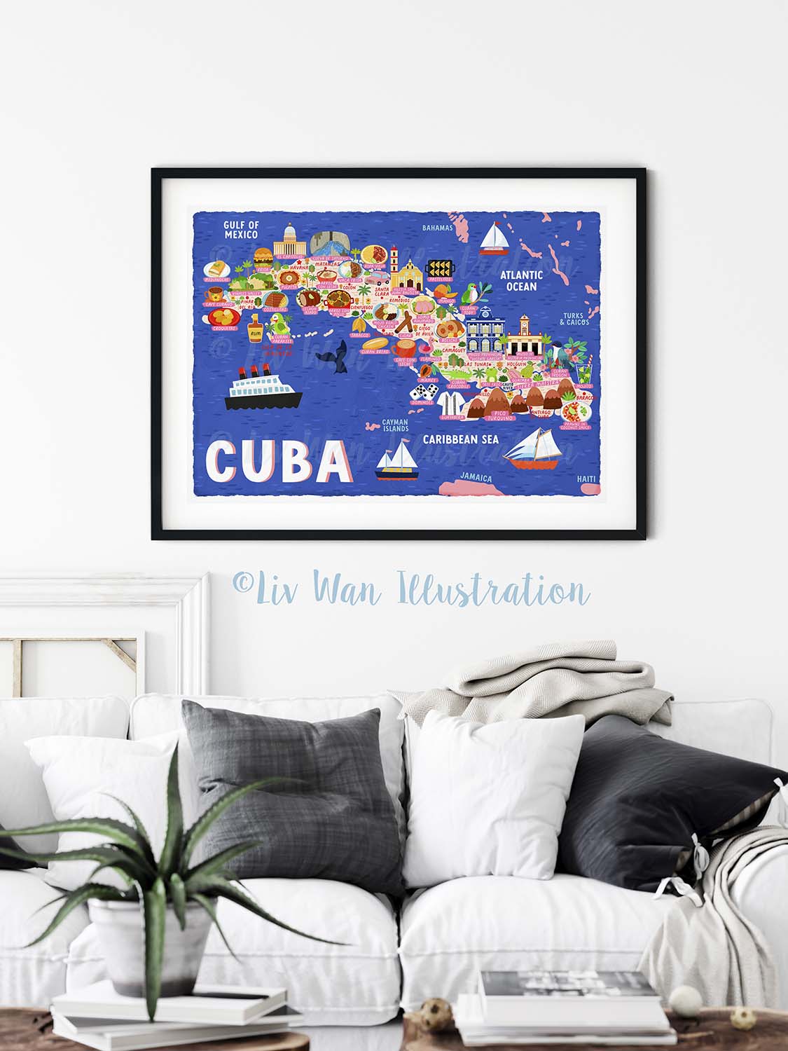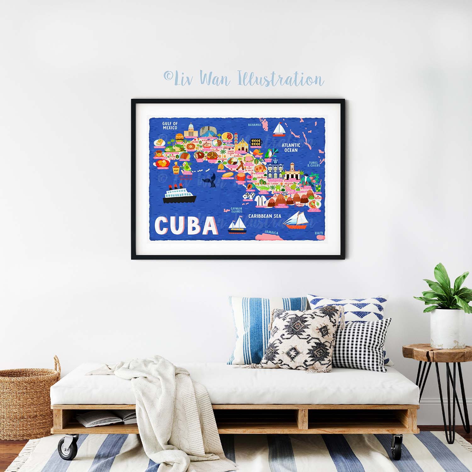 This Cuba Map Poster Wall Art Print Illustration has been designed and made by myself. There has been no outsourcing, no printing in a foreign country whatsoever. This ensures this product is of the highest quality but also dramatically drops any carbon emissions. My aim is to keep everything as green as possible.