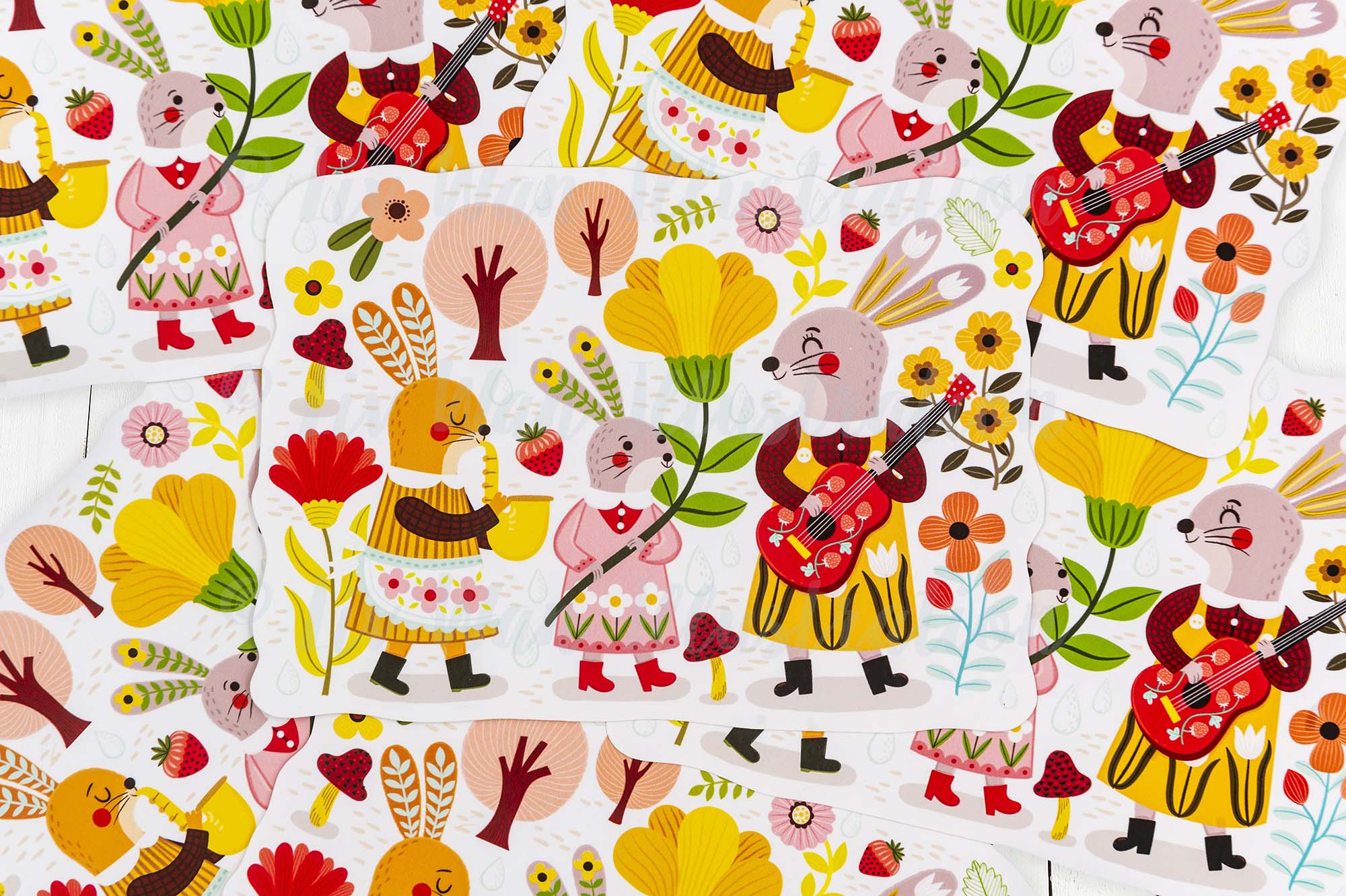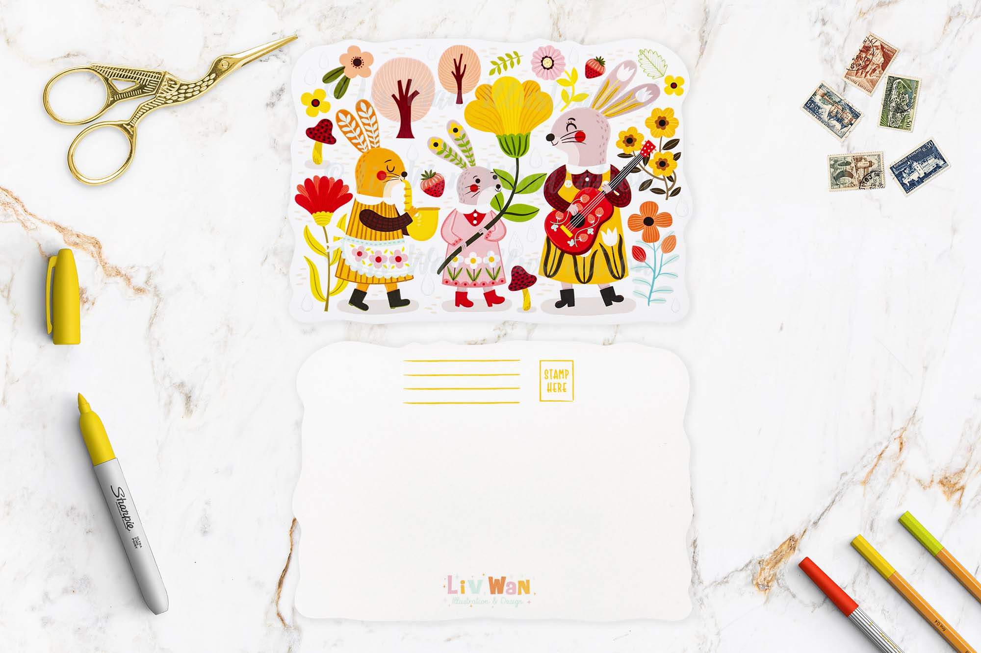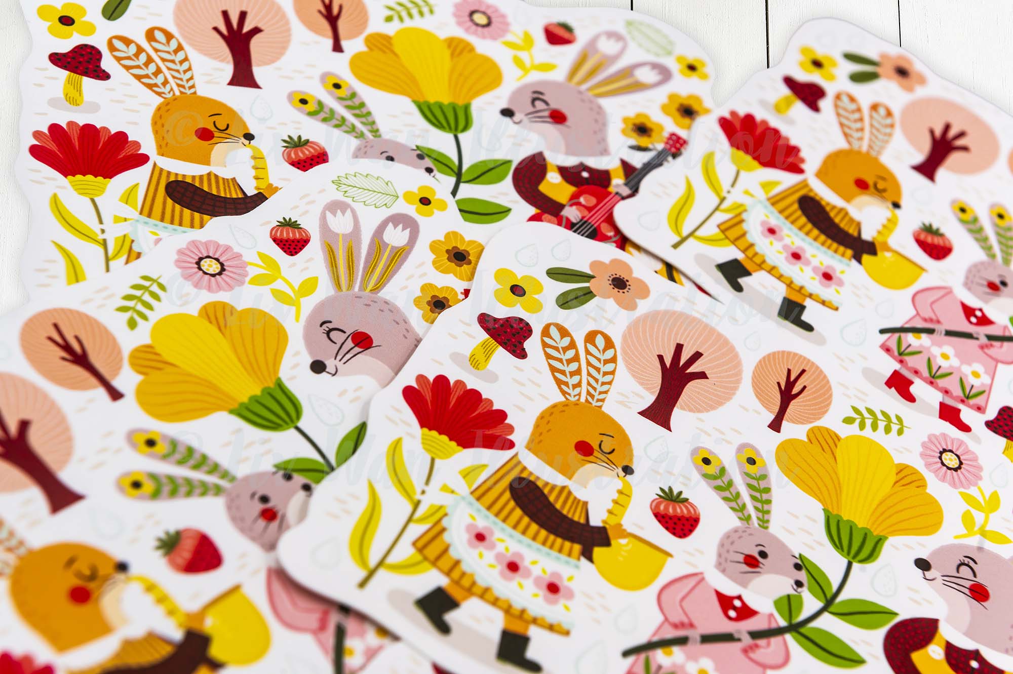 This Easter Bunny Parade Postcard is A6 (10.1 × 14.2cm) in size and is printed by Moggy Mansions on beautiful heavyweight cotton rag paper. This is a fine-art paper that has a beautiful texture, great colour reproduction and perhaps most importantly is absolutely lovely to write on.