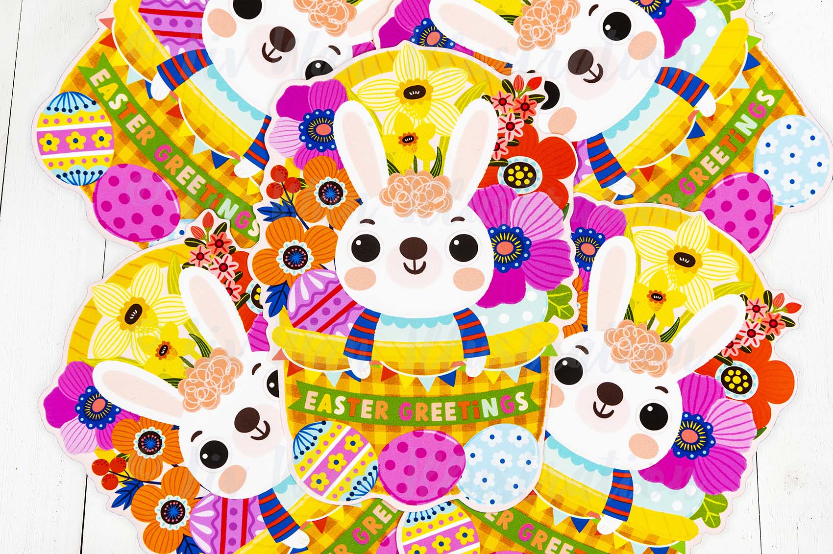 This Easter Bunny Postcard Collection has been designed and made by Moggy Mansions. There has been no outsourcing, no printing in a foreign country whatsoever. This ensures this product is of the highest quality.