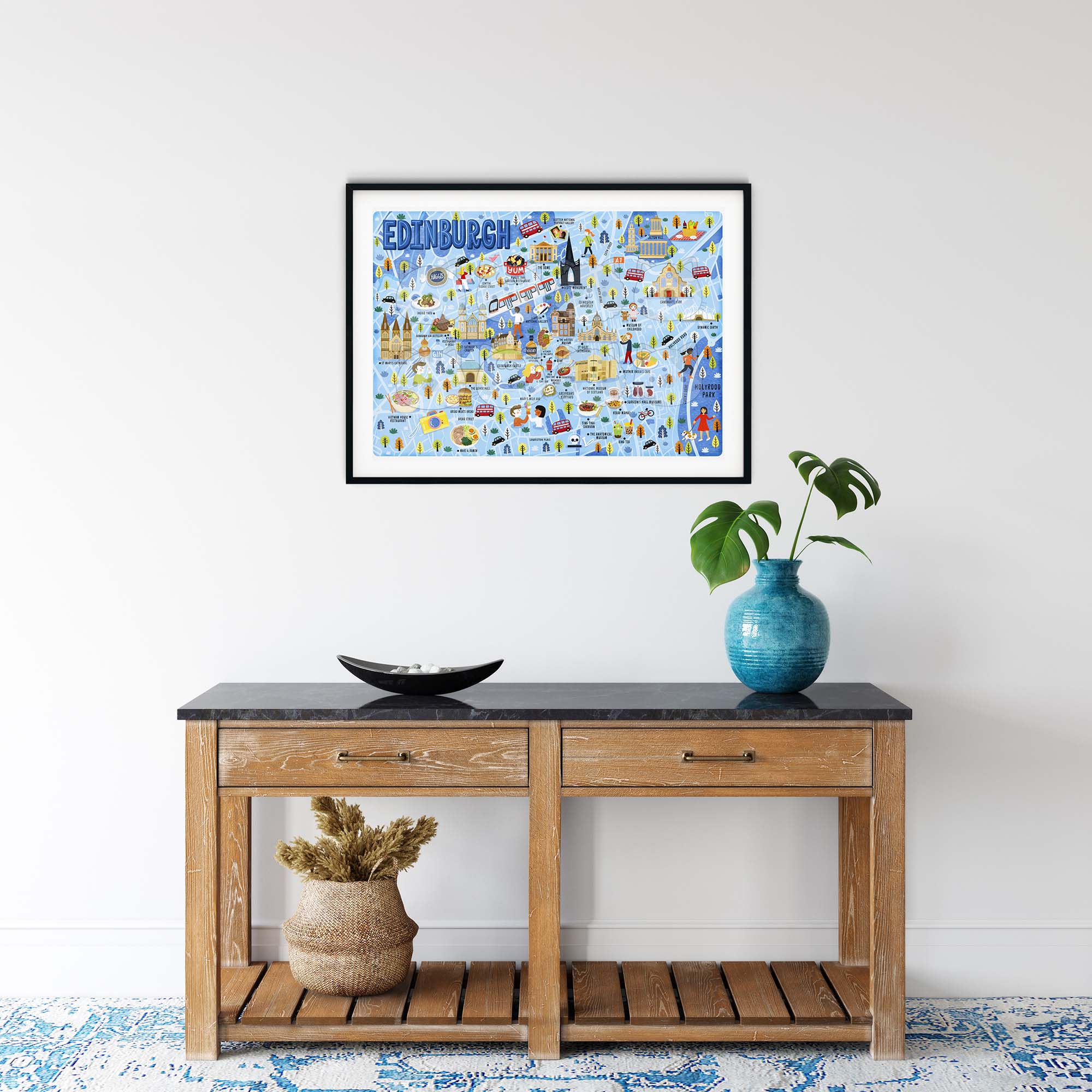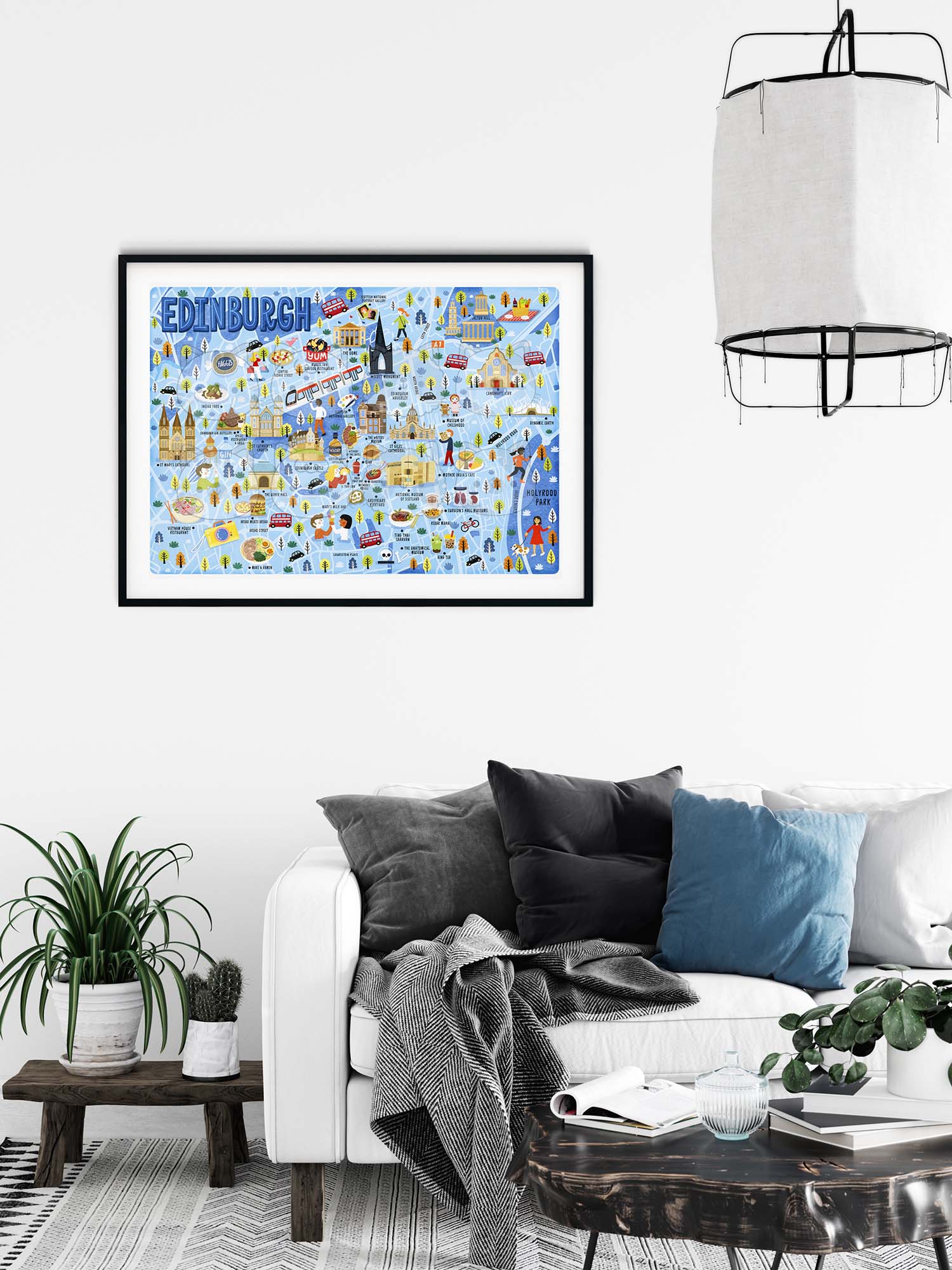 If you really want to see this Edinburgh map poster in a print I would highly recommend going for at least A3 in size. This isn’t me just wanting to make money, it’s because there’s a lot of detail which looks great when printed large. The print in the photo above is A3 in size.