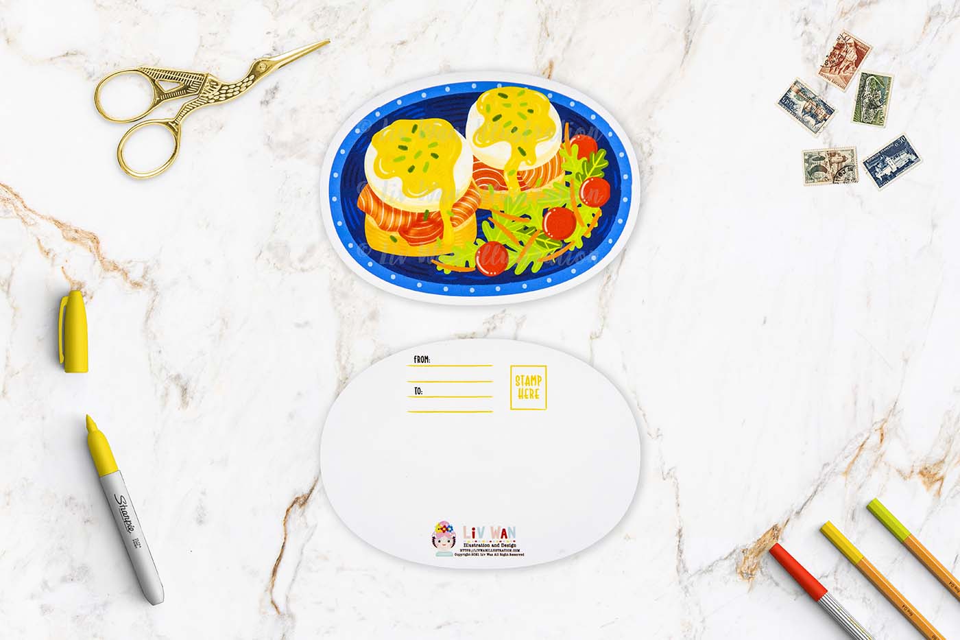 This Eggs Benedict Postcard has been designed and made by myself. There has been no outsourcing, no printing in a foreign country whatsoever. This ensures this product is of the highest quality but also dramatically drops any carbon emissions. My aim is to keep everything as green as possible.
