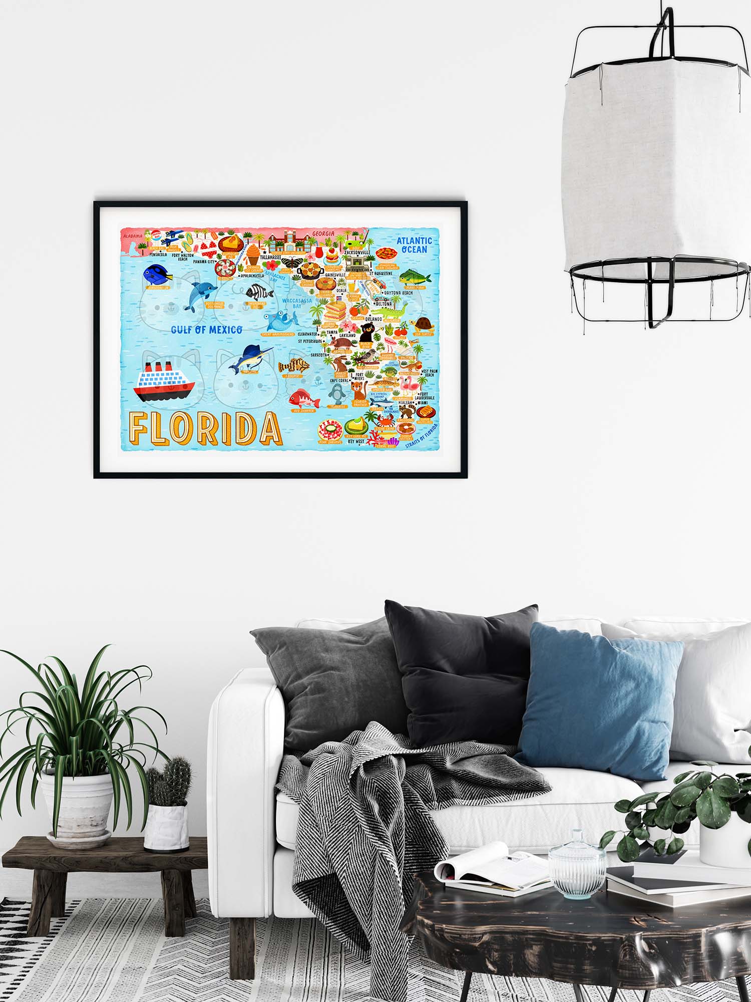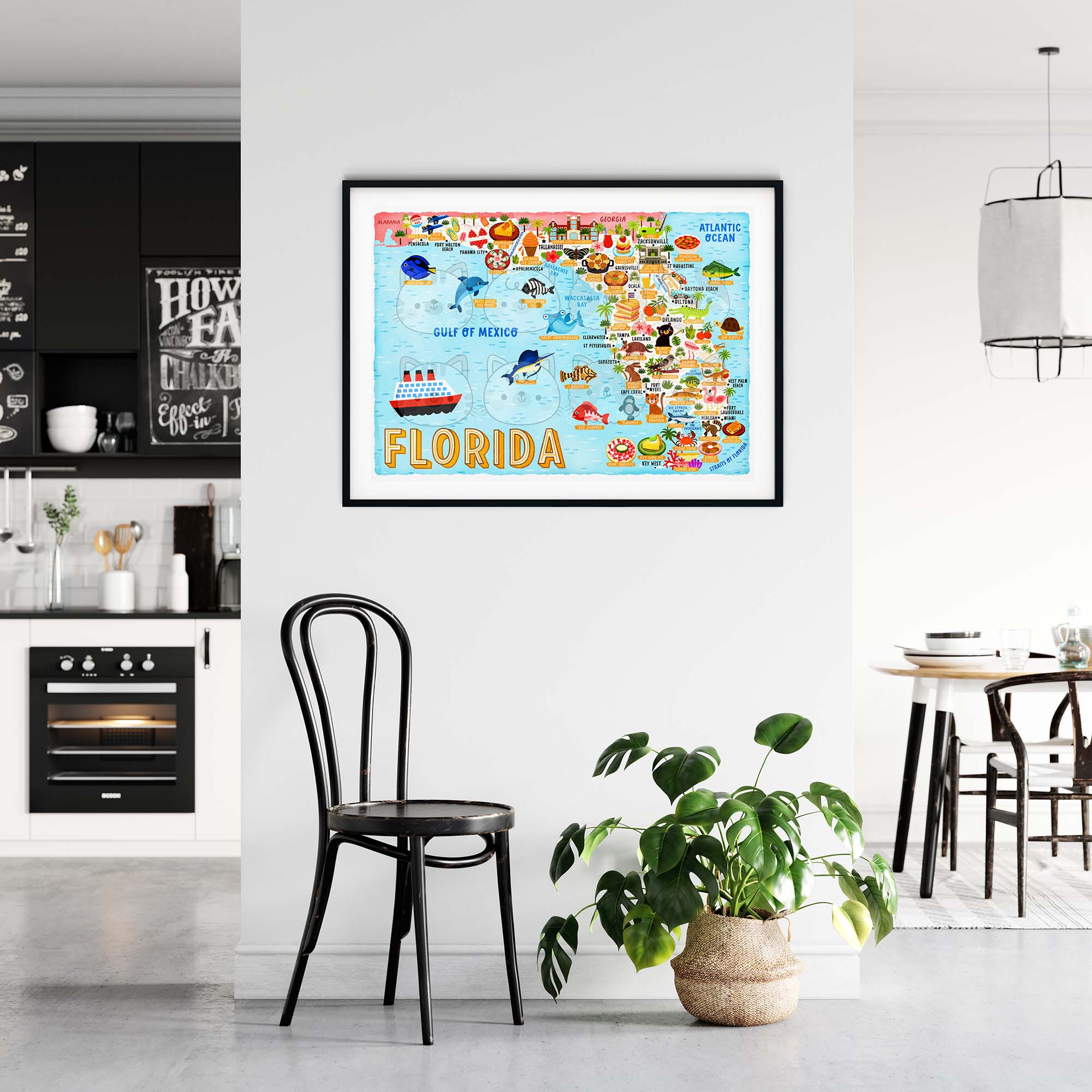 This Florida map poster has been designed and made by Moggy Mansions. There has been no outsourcing, no printing in a foreign country whatsoever. This ensures this product is of the highest quality.