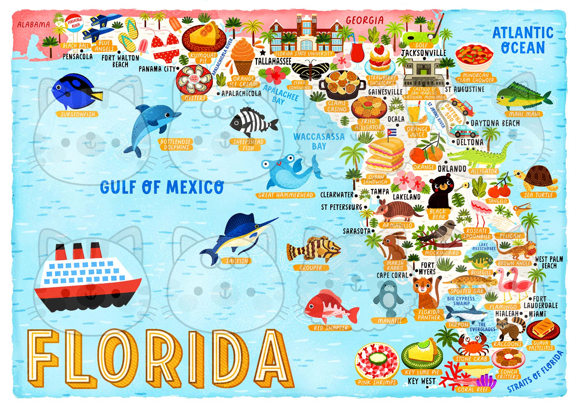 My 44th map, and the fourth map of 2023, is a highly requested map of Florida. As with my previous maps, there are tonnes of details including locations, food, animals, and more.