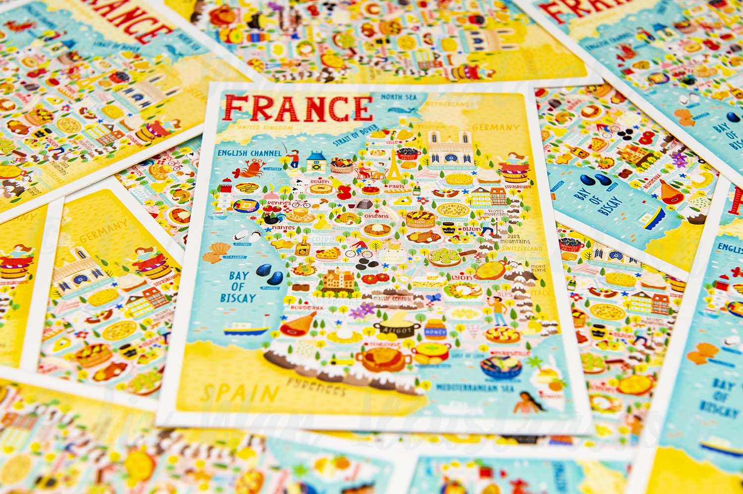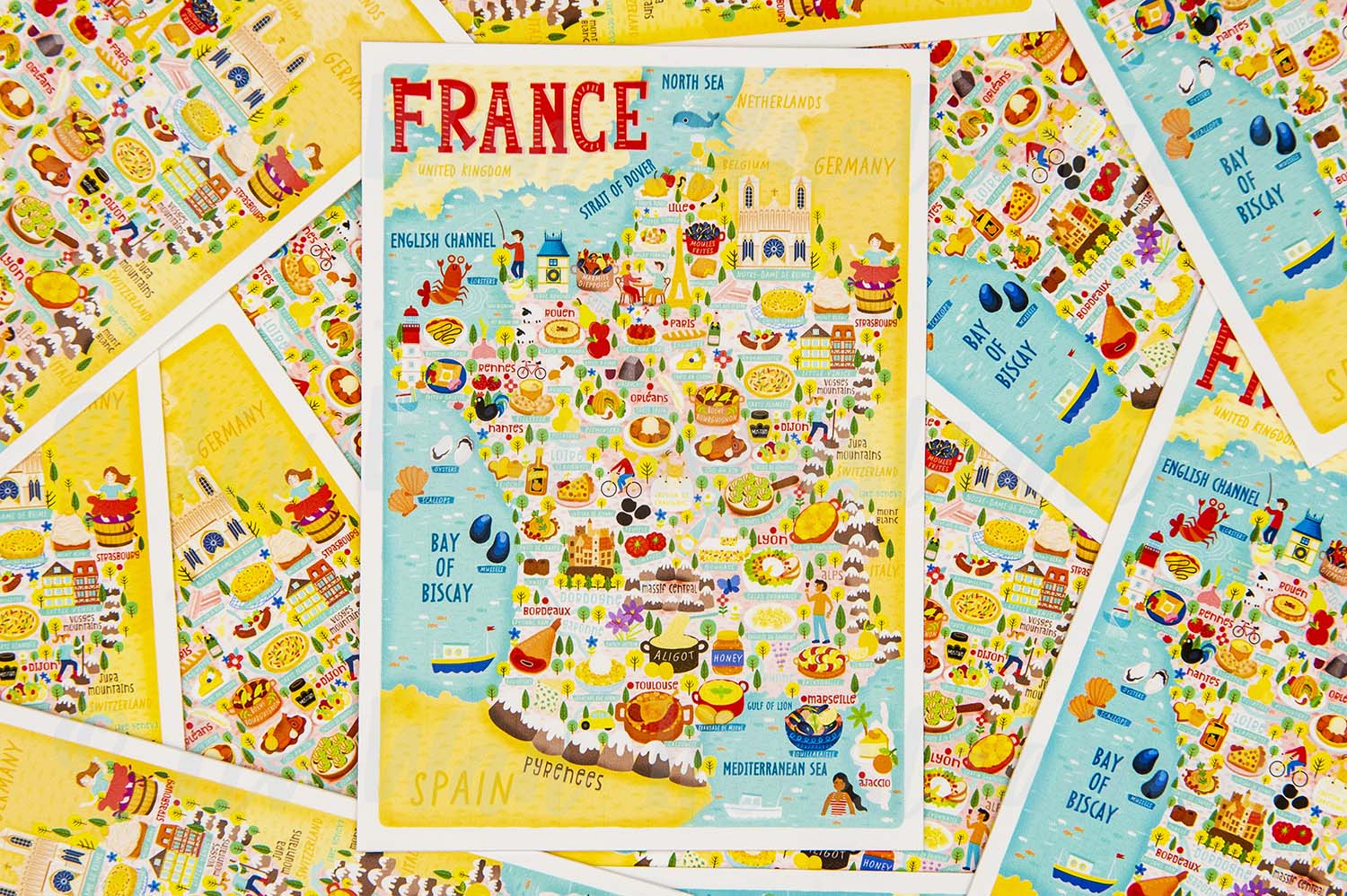If you are collecting beautiful, unique, and special postcards, this France map postcard map illustration should definitely be added to your collection. I’m now doing a wholesale service, so if you are a retailer and you’re interested in my postcards, prints, or any of the other products I have listed on my website, please contact me anytime.