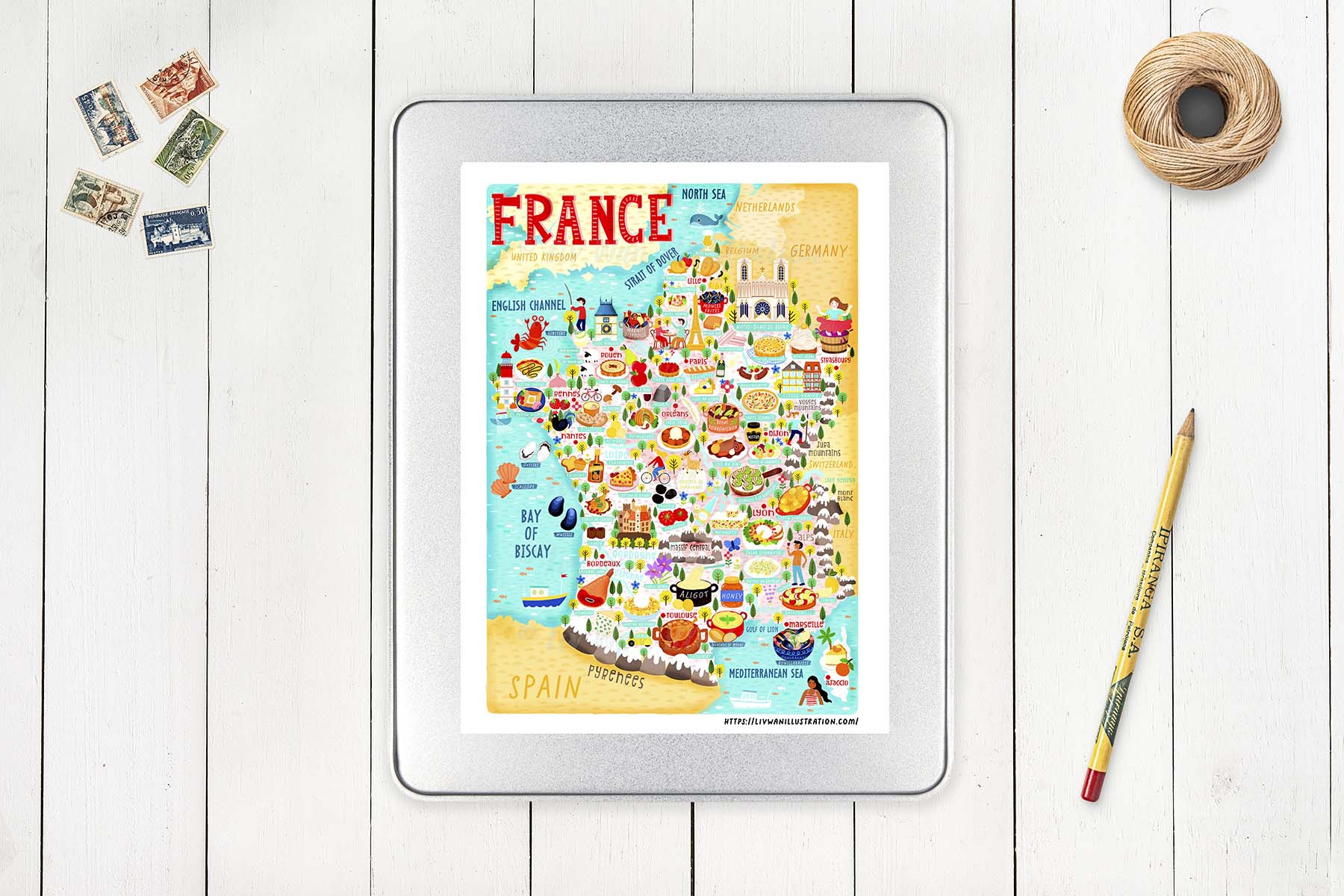 All the foods and views were amazing so I hope to share with you my happy thoughts and experiences through my map illustration. I’m a foodie and I love food so my main focus on this map is food. This map of France only focuses on the mainland and I didn’t include the overseas area as I feel it looks too crowded.