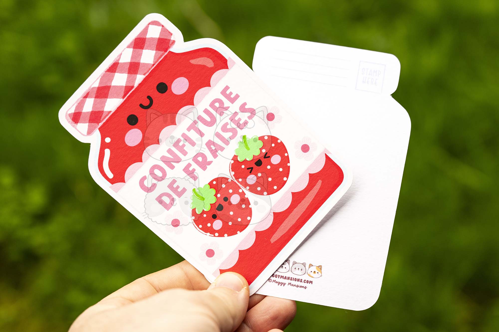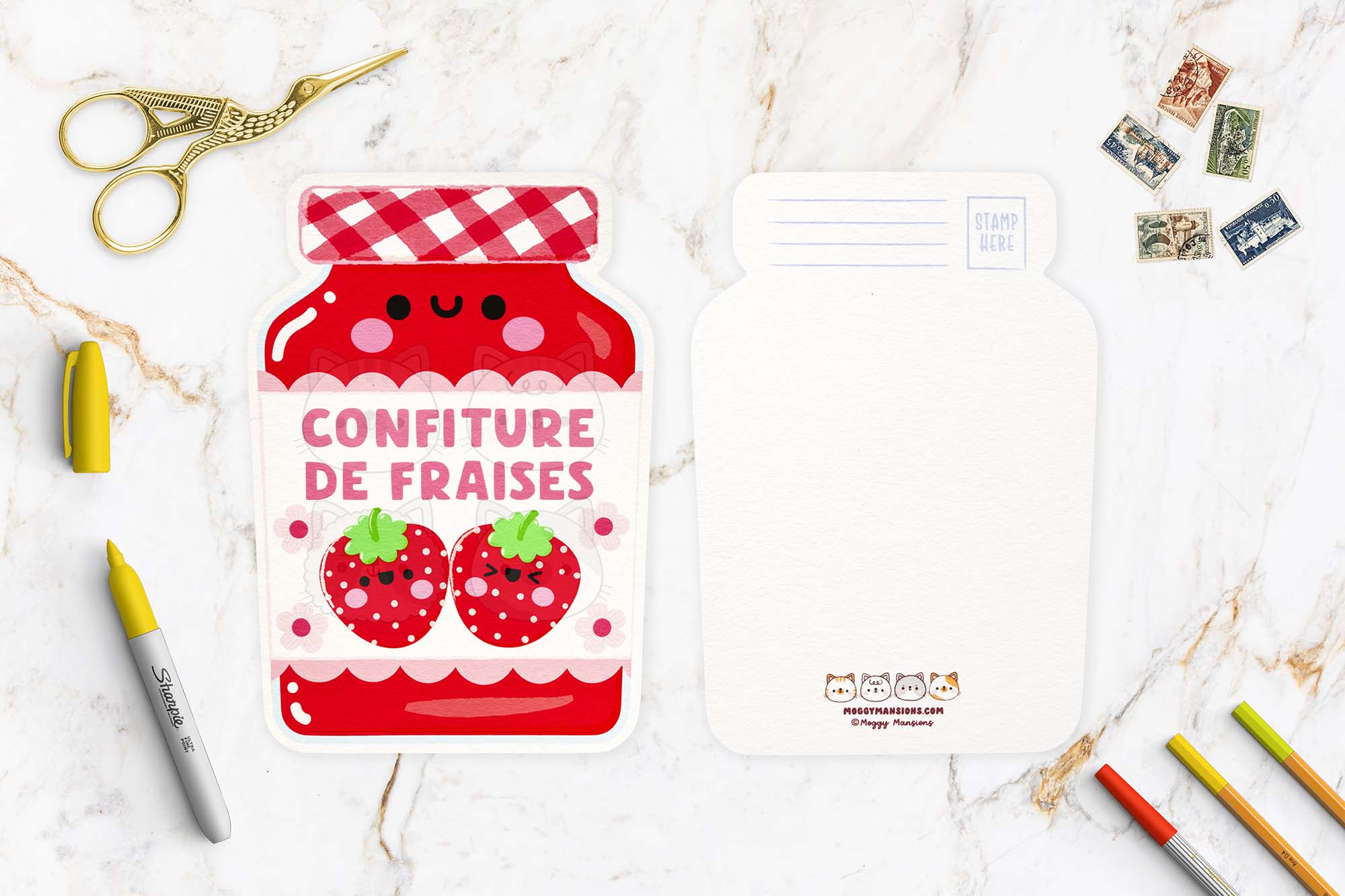 This French Strawberry Jam Postcard has been designed and made by Moggy Mansions. There has been no outsourcing, no printing in a foreign country whatsoever. This ensures this product is of the highest quality.