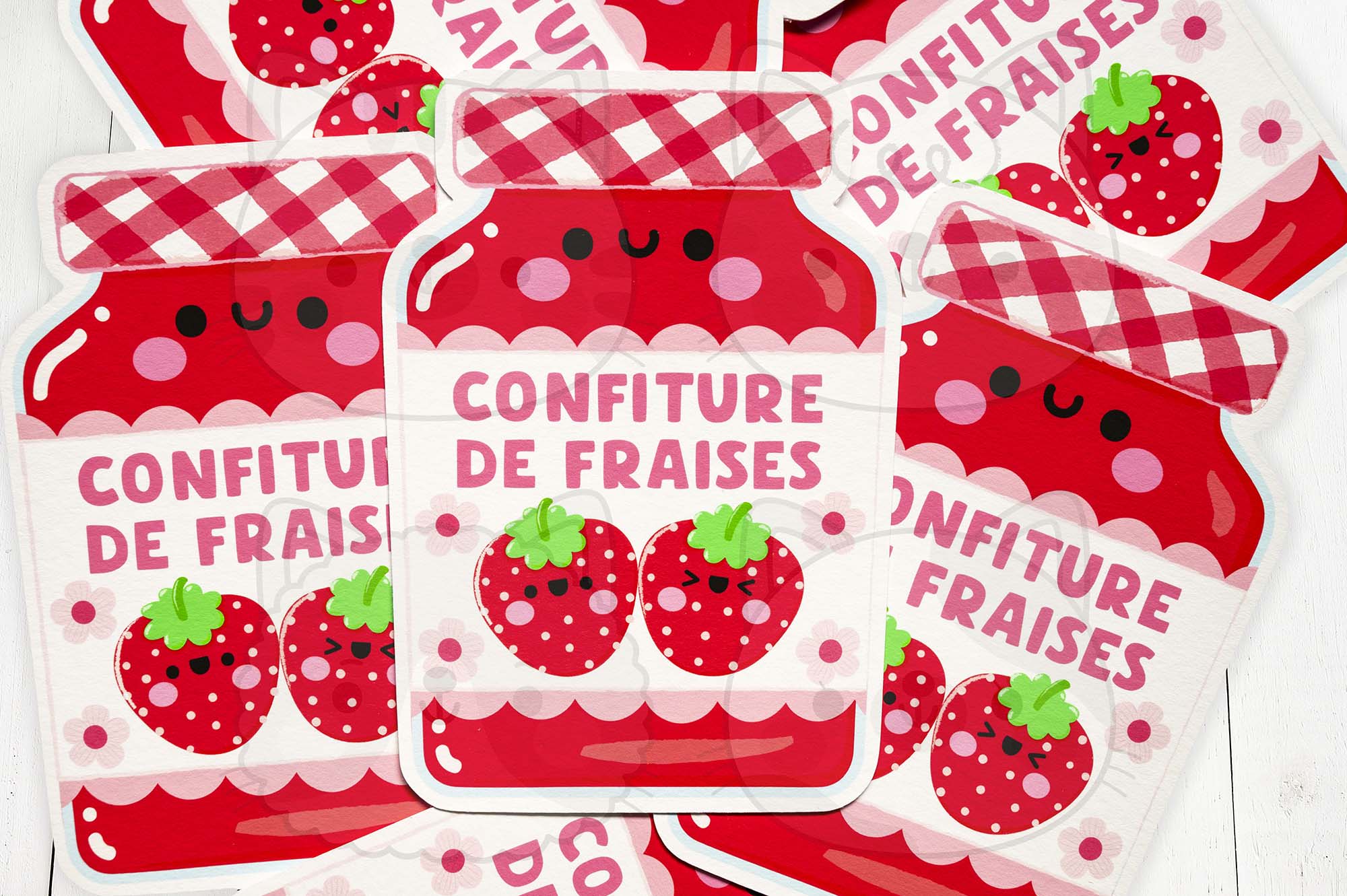 Introducing our French Strawberry Jam Postcard. For 2026 we’ll be trading at two major conventions in France so we’ve designed and made a small colletion of French food postcards. This fun A6 5.6″ tall French Strawberry Jam Postcard is one of these postcards but has also been included in my pantry collection.