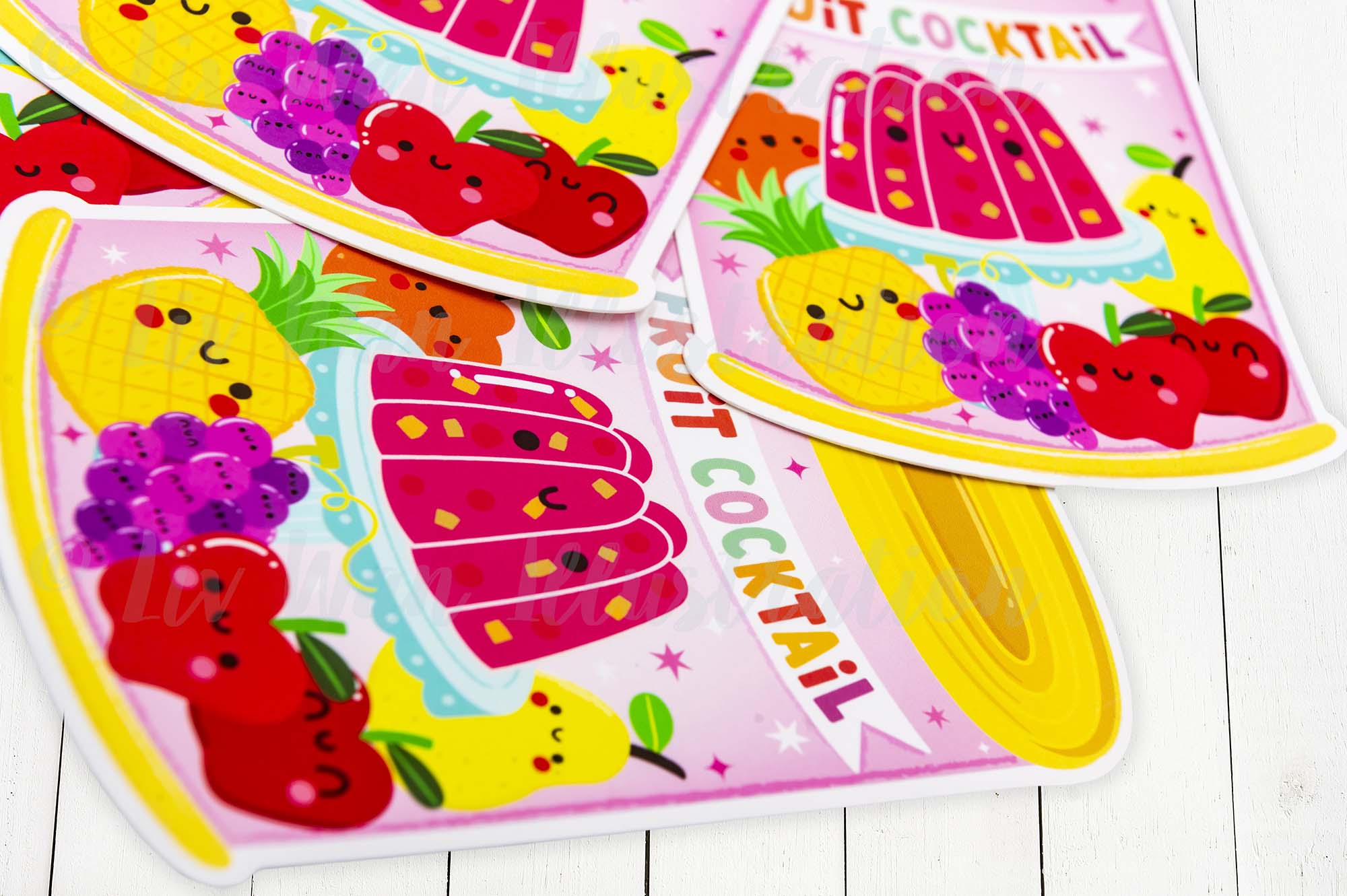 Introducing my Fruit Cocktail Postcard. This fun A6 5.6″ tall Fruit Cocktail Postcard is part of my Pantry collection, celebrating many things that I keep in my pantry.