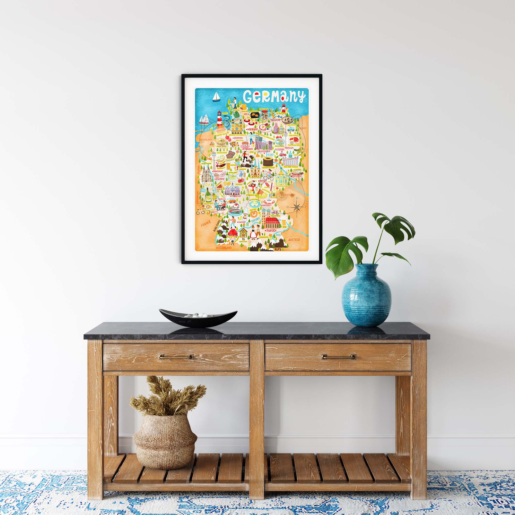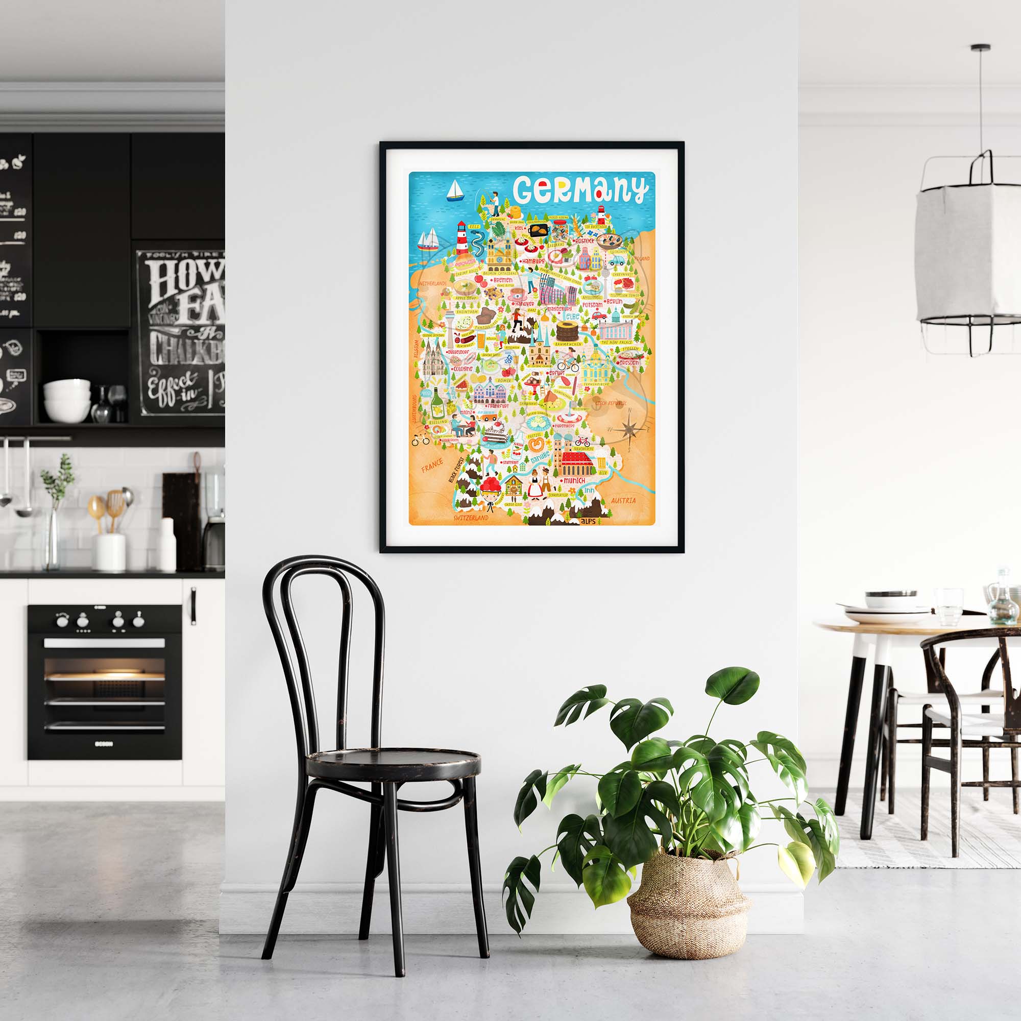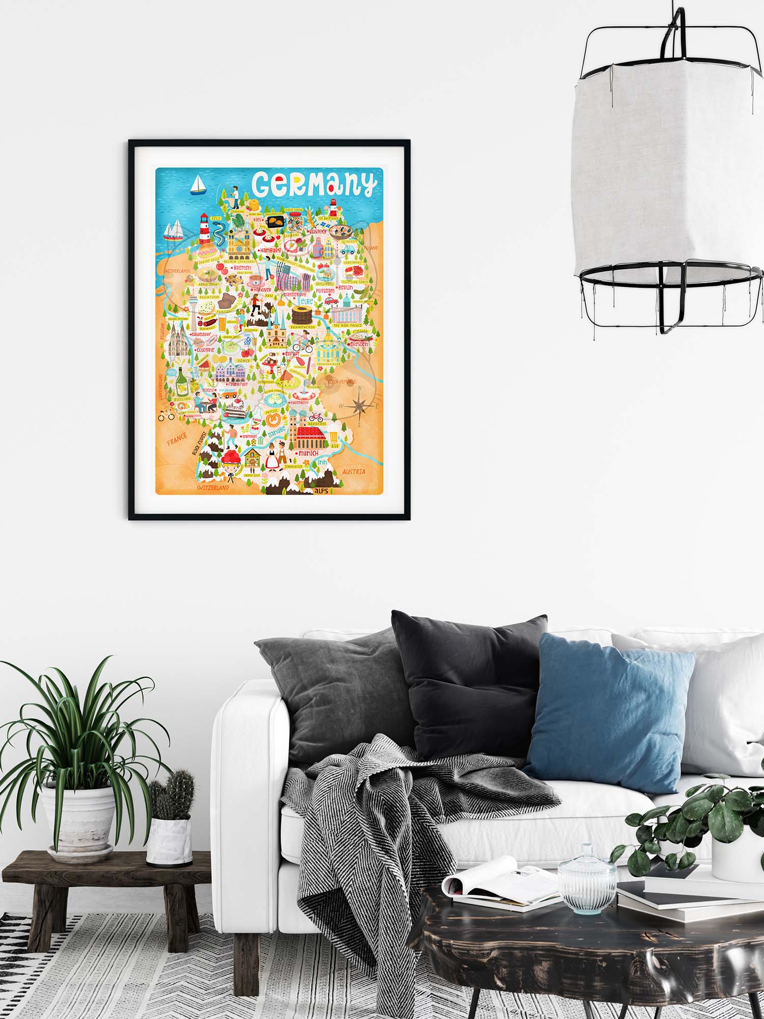 If you really want to see this Germany Map Poster in a print I would highly recommend going for at least A3 in size. This isn’t me just wanting to make money, it’s because there’s a lot of detail which looks great when printed large. The print in the photo above is A3 in size.