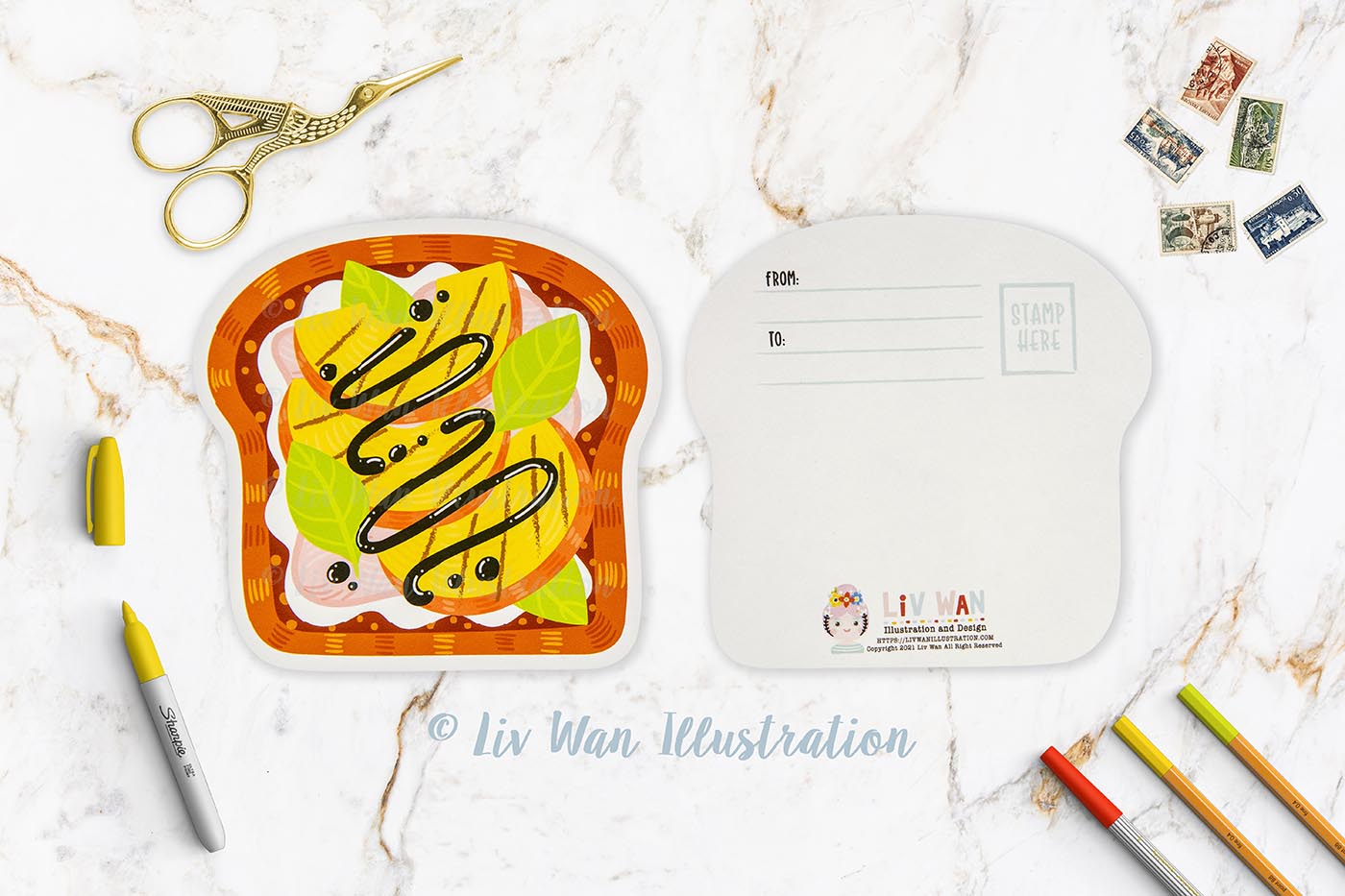 Grilled Peach Toast Postcard. Fun food postcard (B-3)