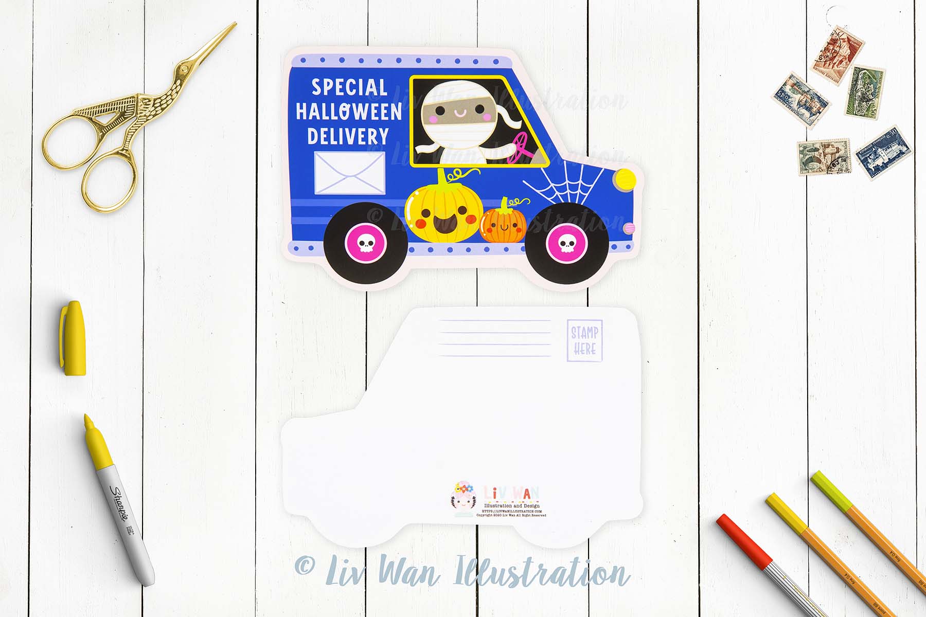Halloween Mail Van Postcard. My second collection of Halloween cards, I have created eight really fun-shaped postcards for the Halloween season.