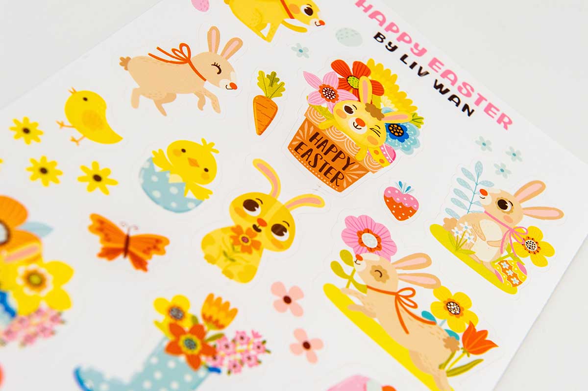 This Happy Easter Bunny Sheet has been entirely made by myself with no outsourcing. This sticker sheet is printed on premium glossy vinyl sticker paper with fantastic colour reproduction and is lovely to write on.
