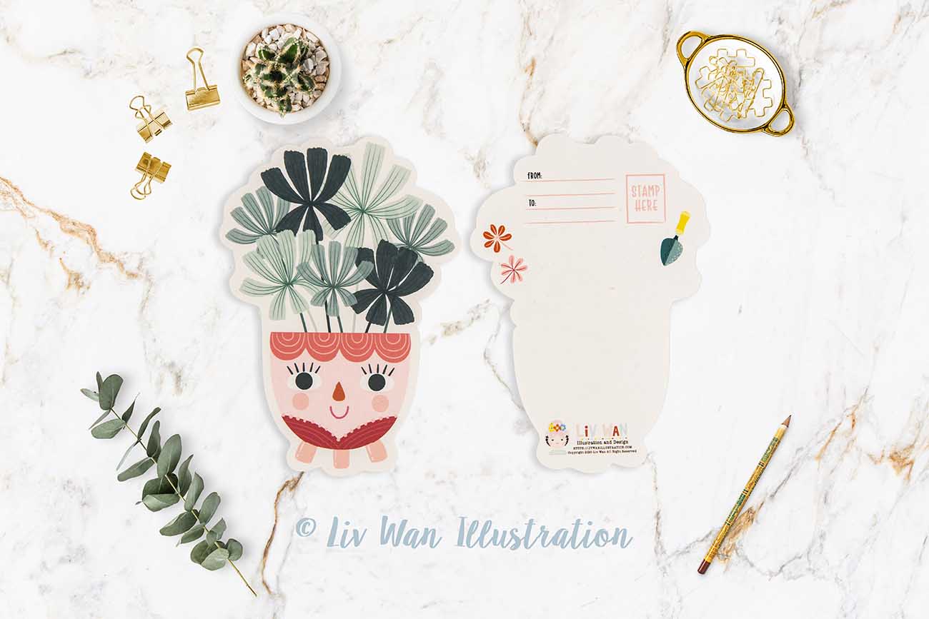 I’m completely in love with creating new unique shape postcards and this Happy Face Plant Lovers Postcard is one of these.