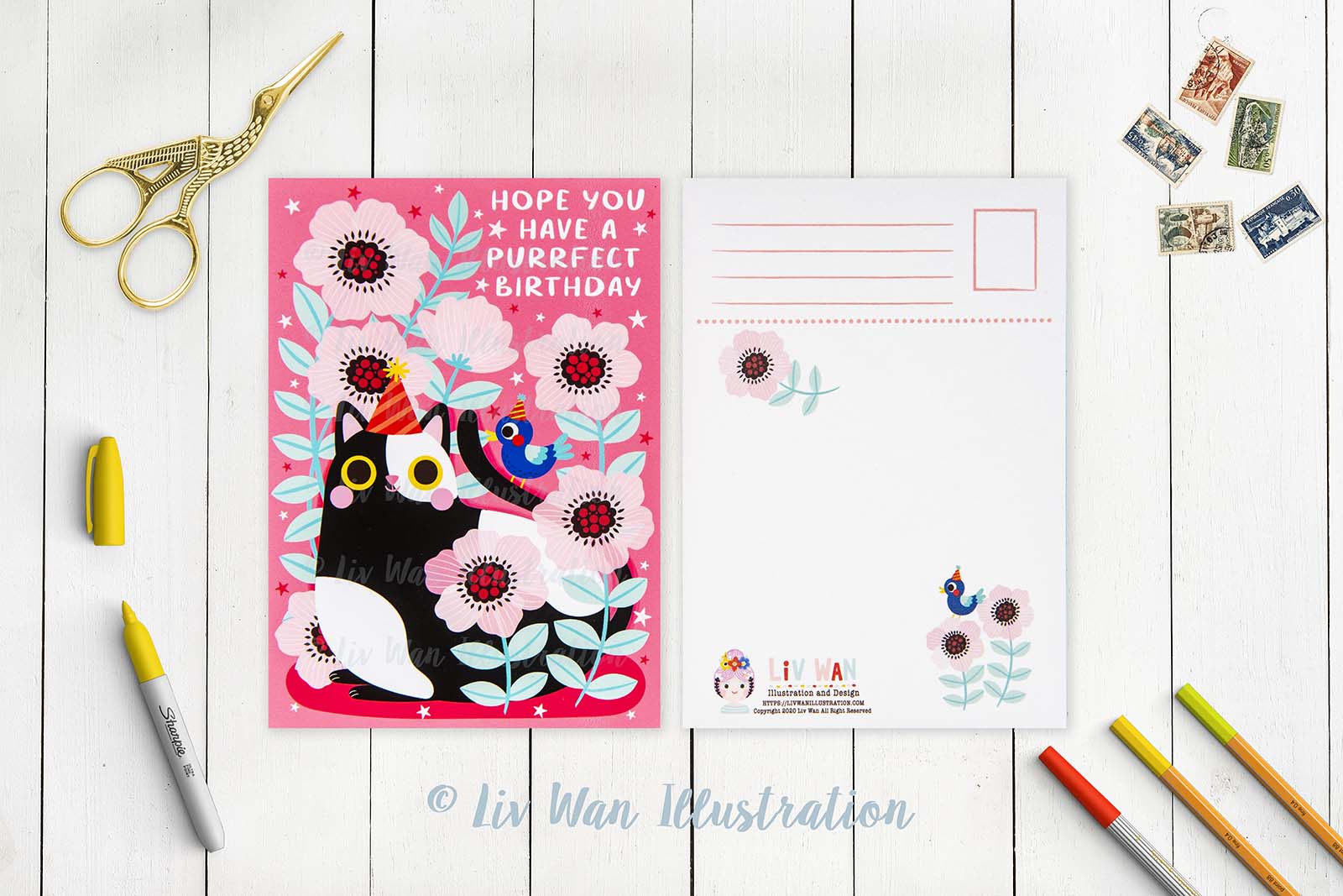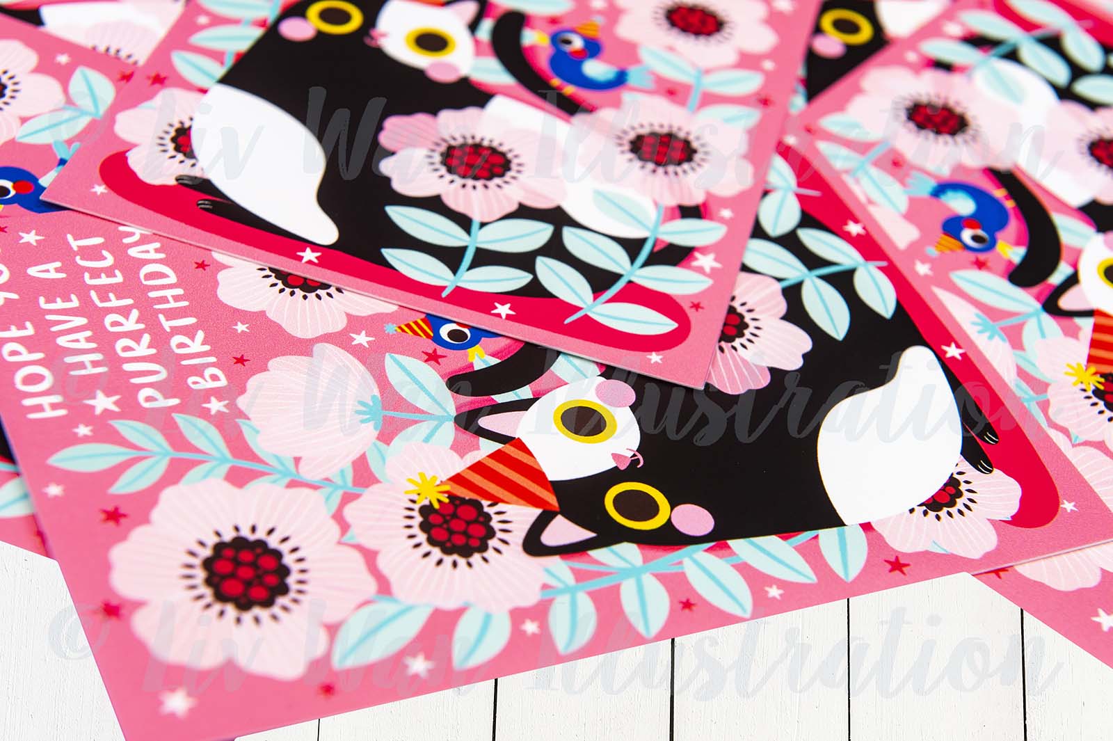 This Have a Purrfect Birthday Postcard is one of the first batches of birthday postcards I have created.