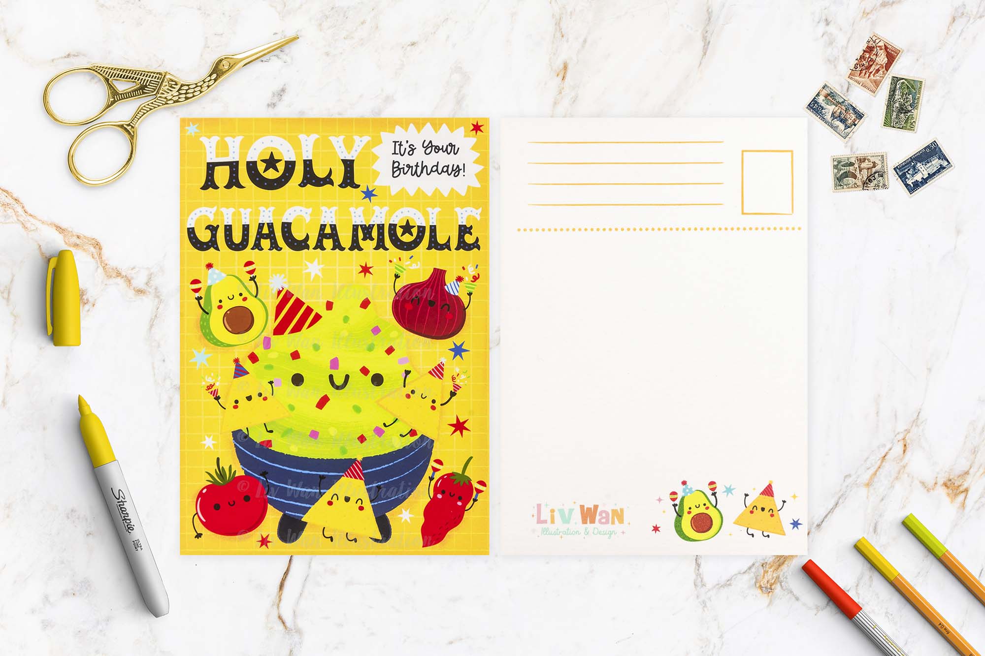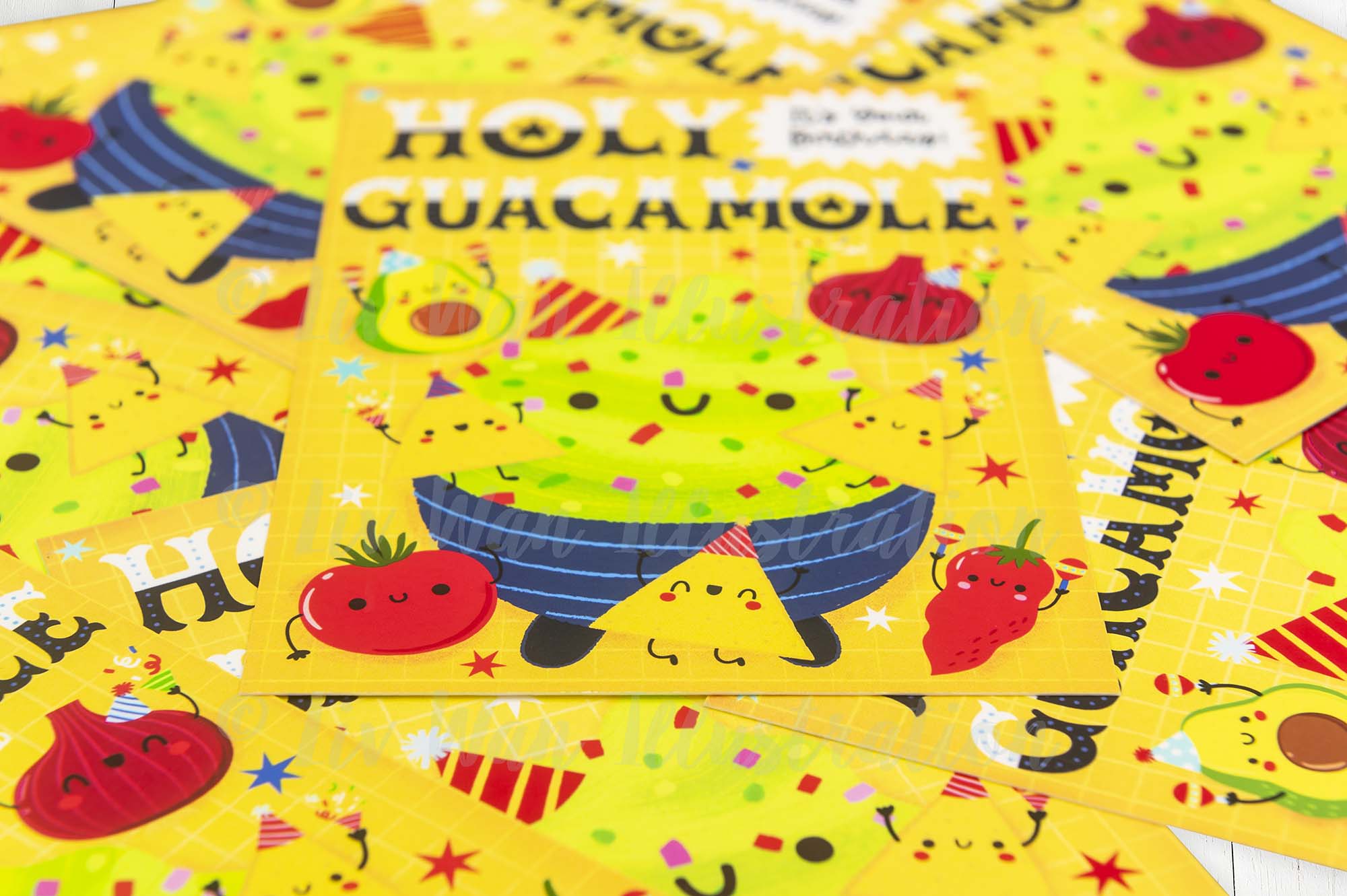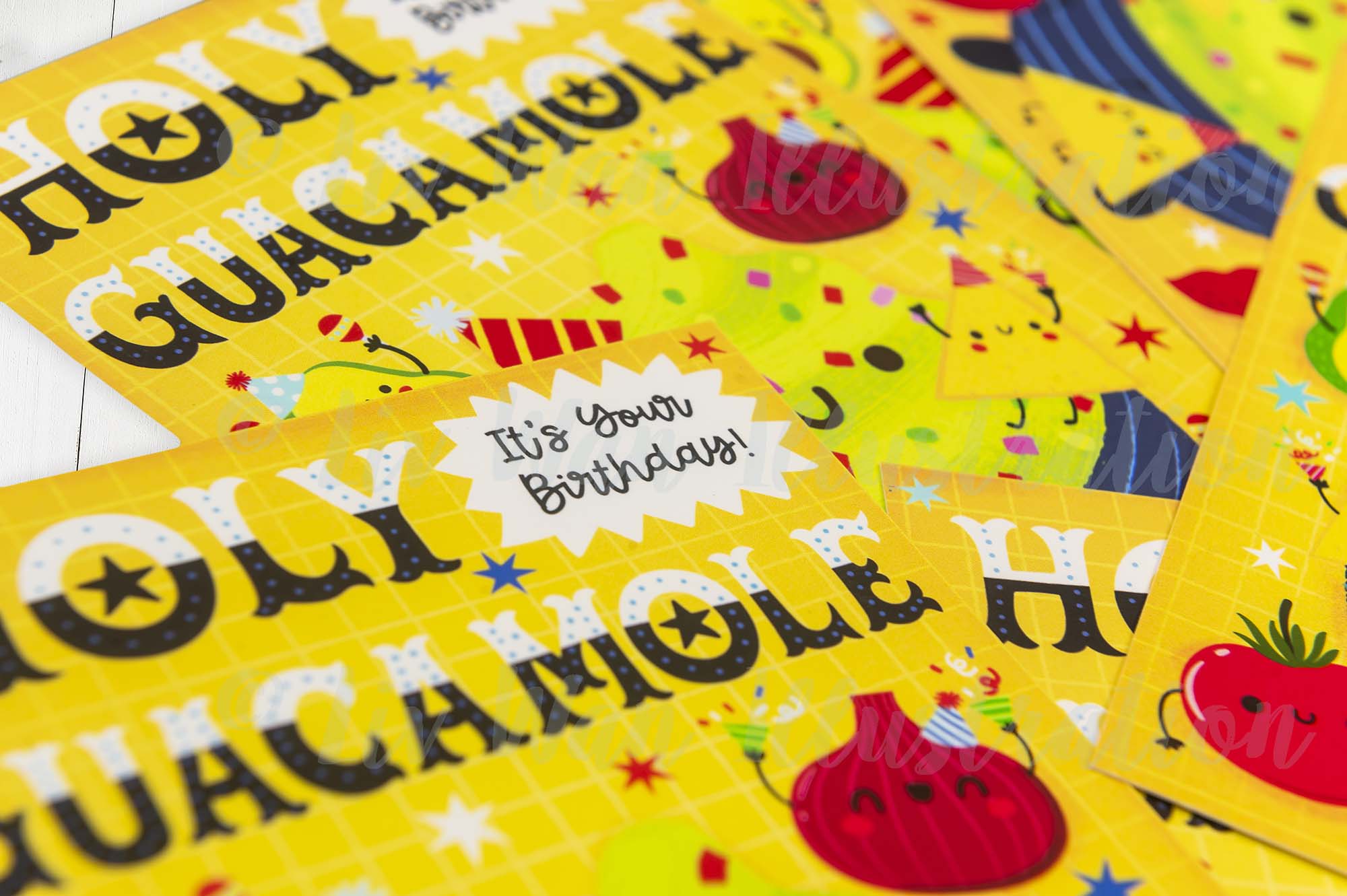 This Holy Guacamole Birthday Postcard is A6 (10.5 × 14.8cm) in size and is printed by Moggy Mansions on beautiful heavyweight cotton rag paper. This is a fine-art paper that has a beautiful texture, great colour reproduction and perhaps most importantly is absolutely lovely to write on.