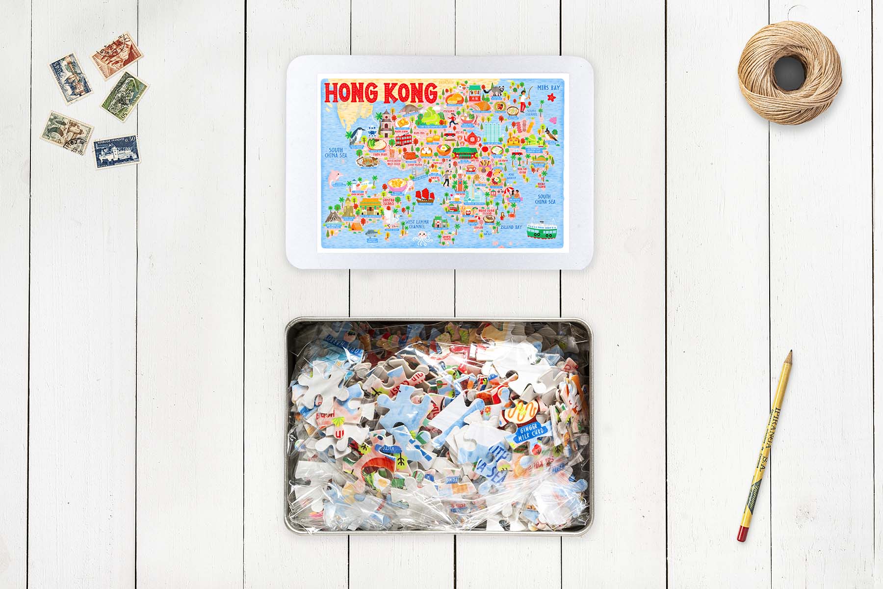 This Hong Kong Map Jigsaw Puzzle is 28x40cm in size and contains 300 pieces. This jigsaw has a quirky shape which absolutely adds to the charm.