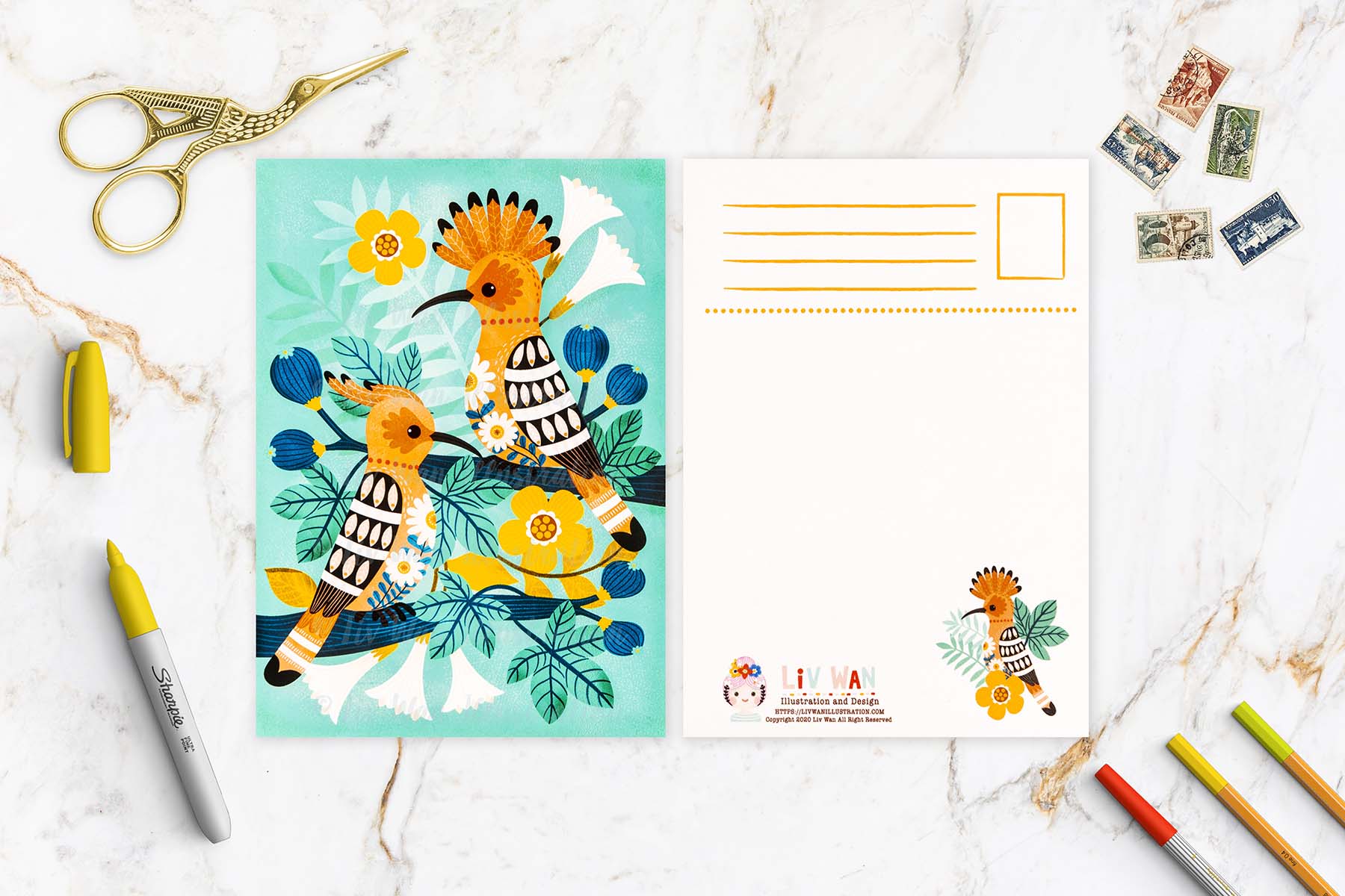 Introducing my stunning illustrated Hoopoe bird postcard! This postcard features a detailed and vibrant illustration of the Hoopoe bird, showcasing its unique plumage and distinctive markings.