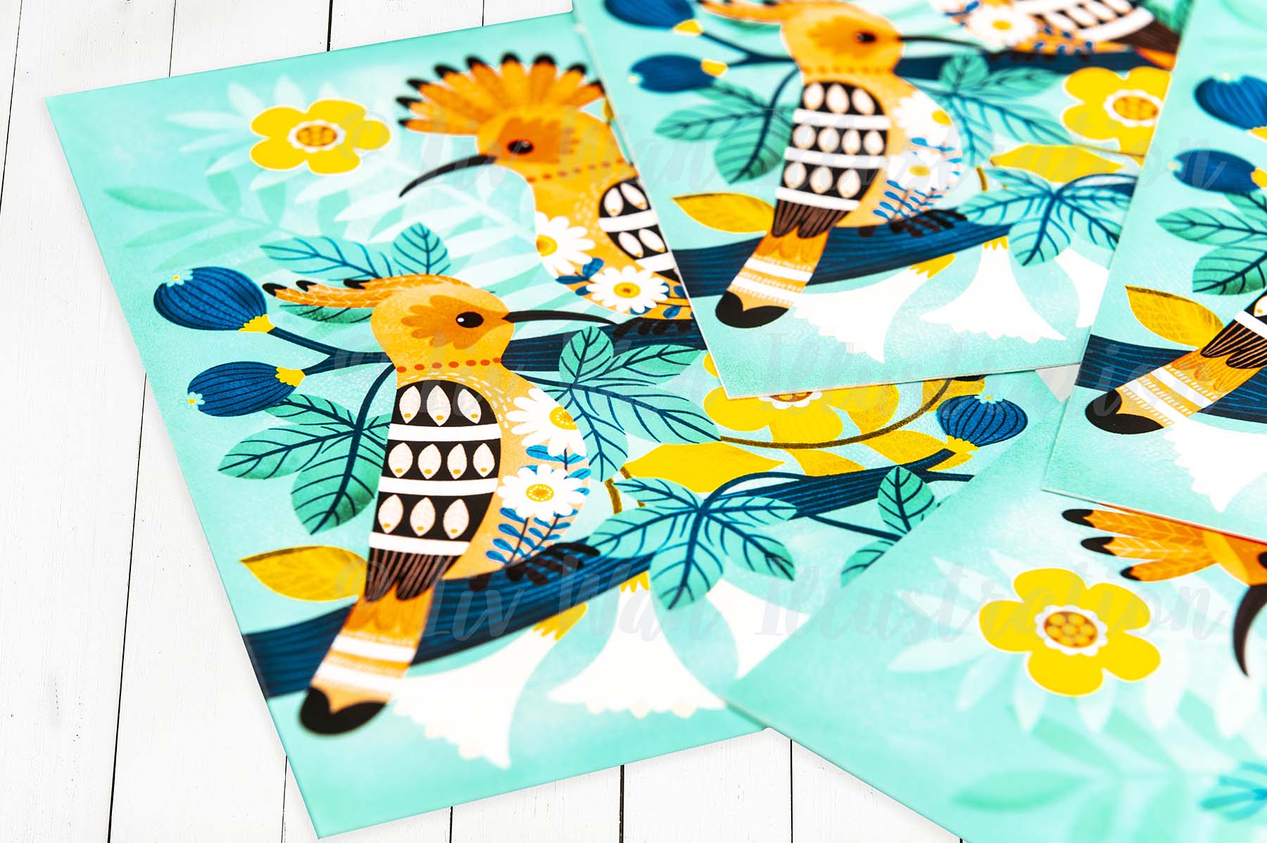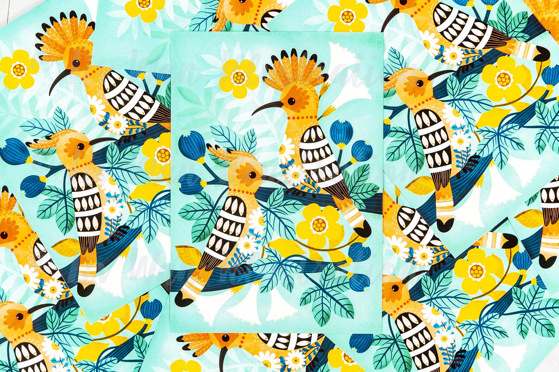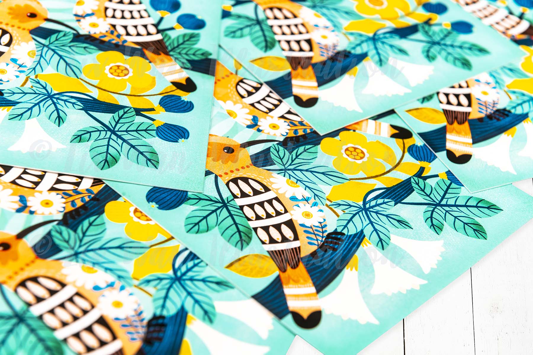 This Hoopoe Bird Postcard is A6 (10.5 × 14.8cm) in size and is printed by Moggy Mansions on beautiful heavyweight cotton rag paper. This is a fine-art paper that has a beautiful texture, great colour reproduction and perhaps most importantly is absolutely lovely to write on.