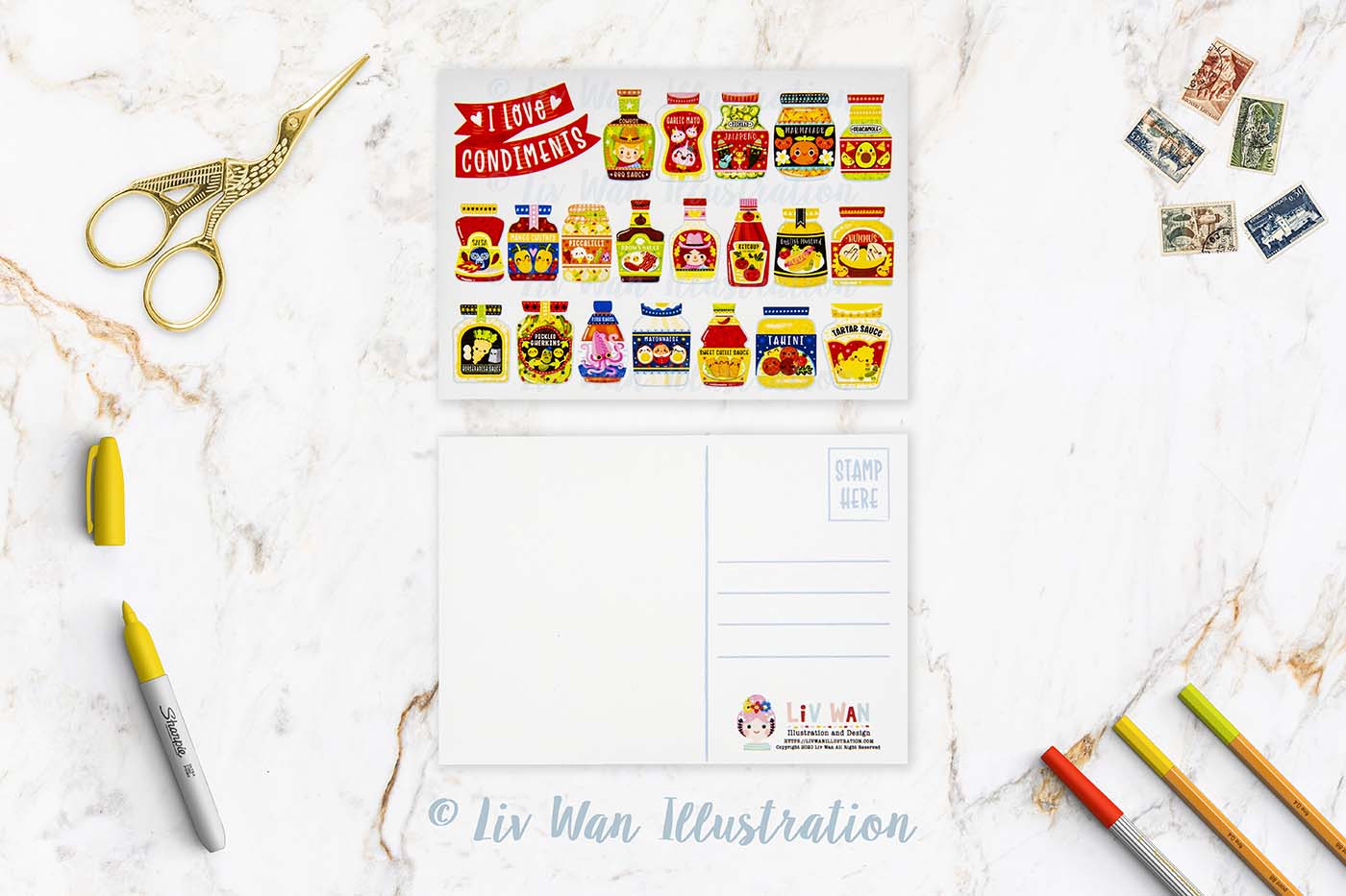 This I love Condiments Postcard has been designed and made by myself. There has been no outsourcing, no printing in a foreign country whatsoever. This ensures this product is of the highest quality but also dramatically drops any carbon emissions. My aim is to keep everything as green as possible.