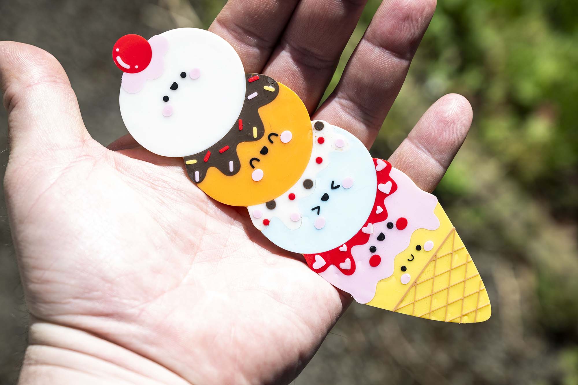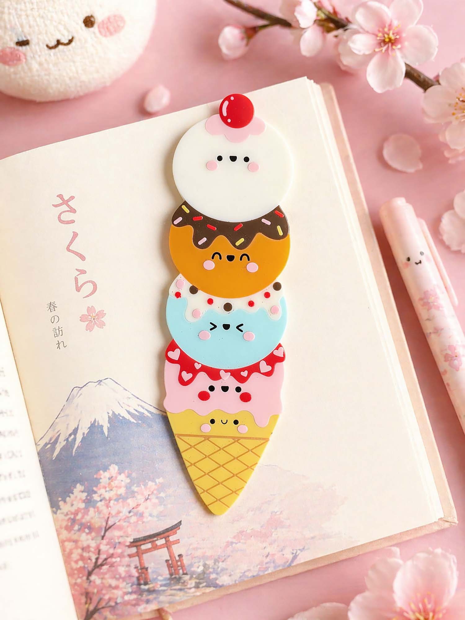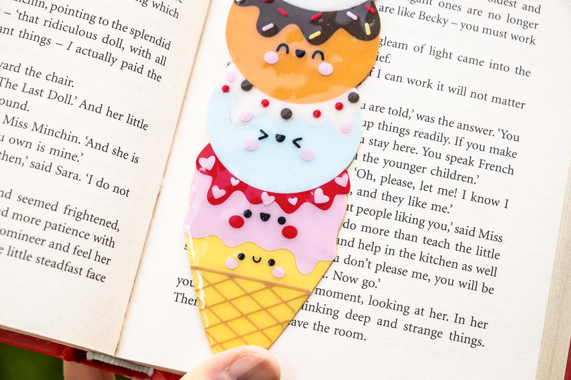 Brand new for 2026, we’ve invested in a 3d printer and have started making super cute 3d printed products, with our first line of products 3d printed bookmarks. Initially we have six designs and one of these is this Ice Cream Bookmark.