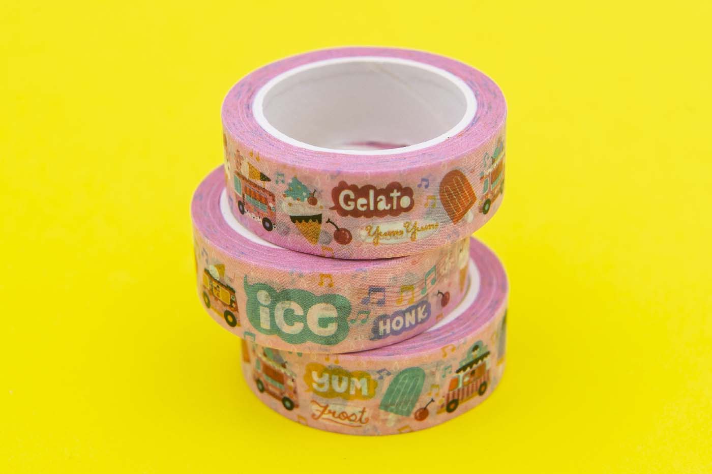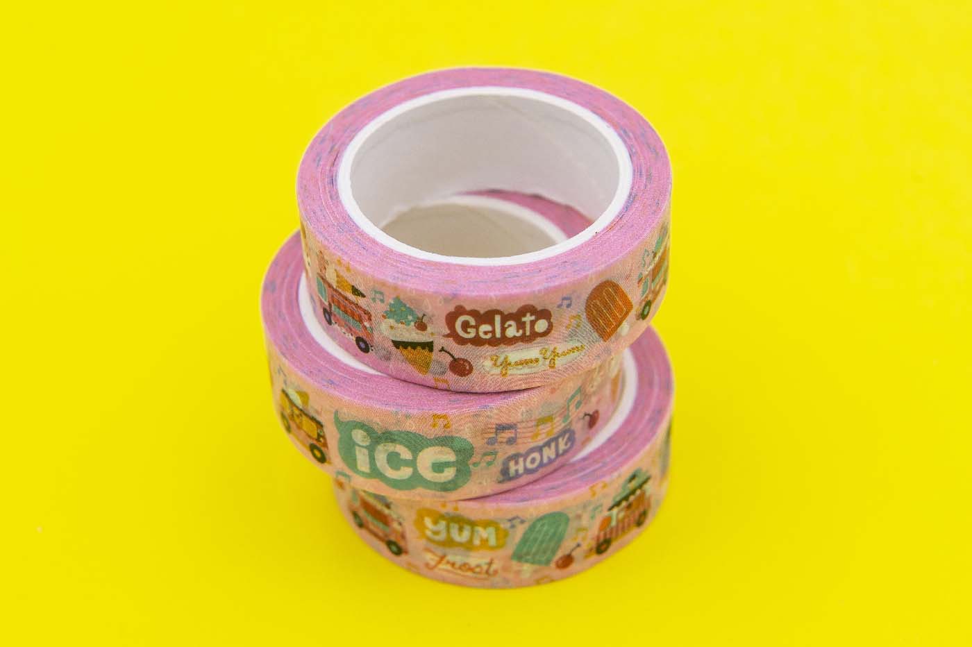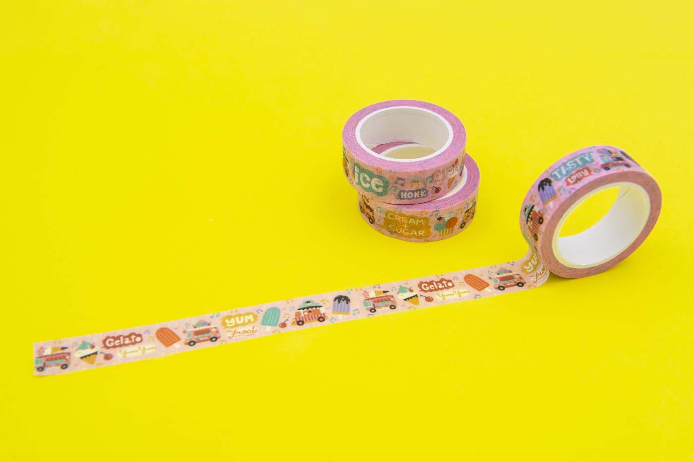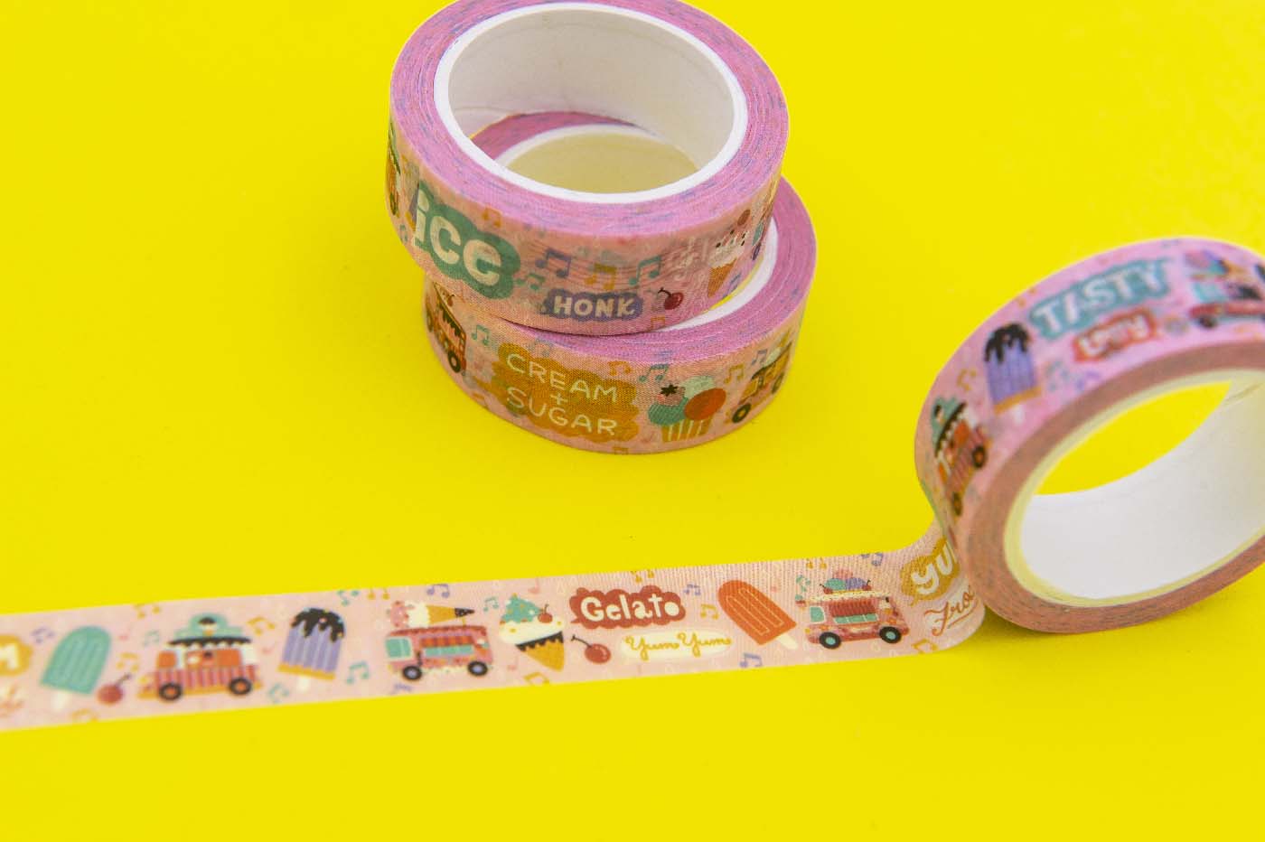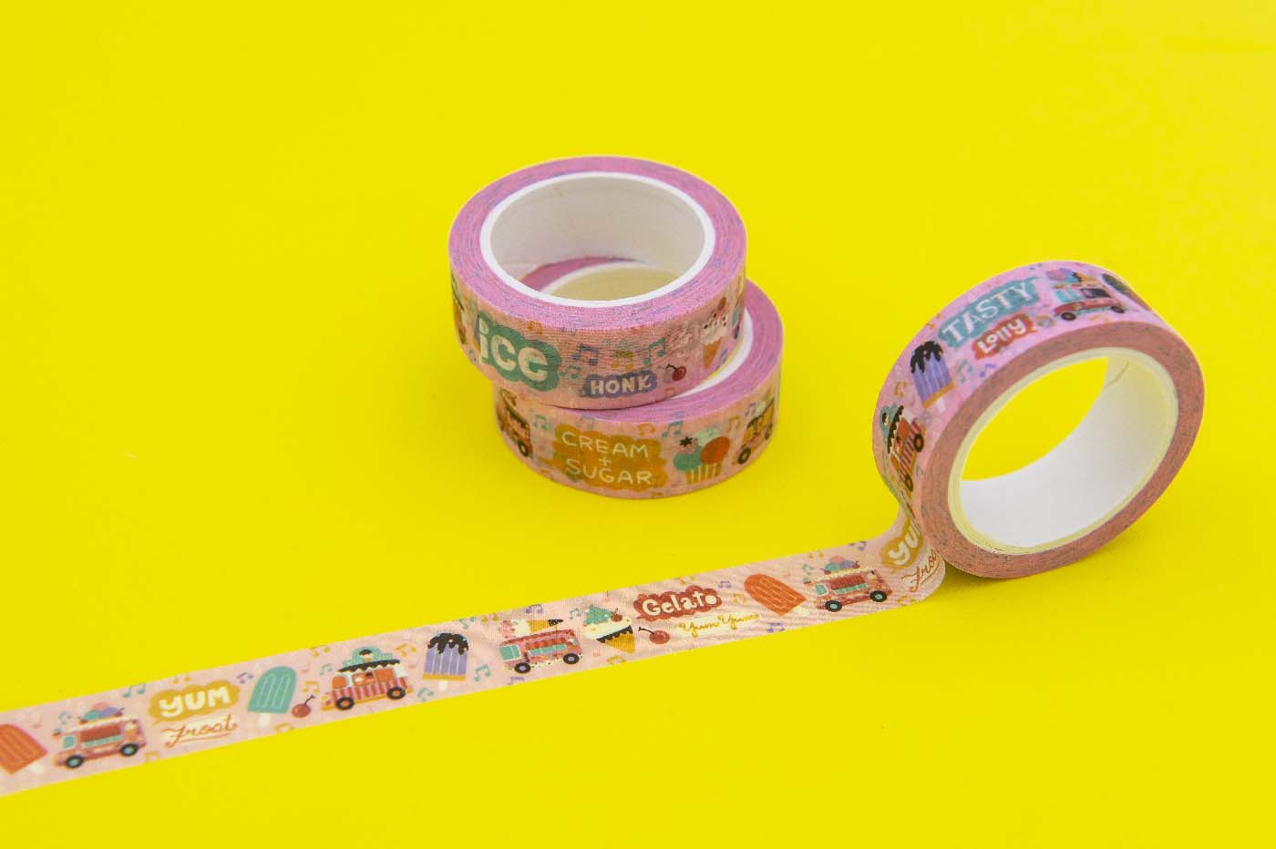 These are designed by myself in the UK but manufactured abroad. This Ice Cream Van Washi Tape has a semi-permanent adhesive coating that allows for some repositioning.