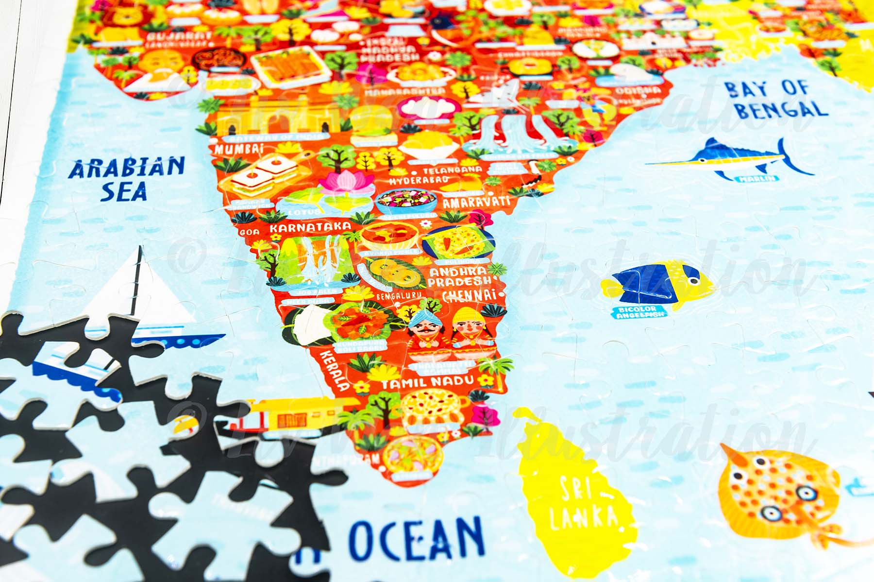 This India map jigsaw puzzle is 28x40cm in size and contains 300 pieces. This jigsaw has a quirky shape which absolutely adds to the charm.