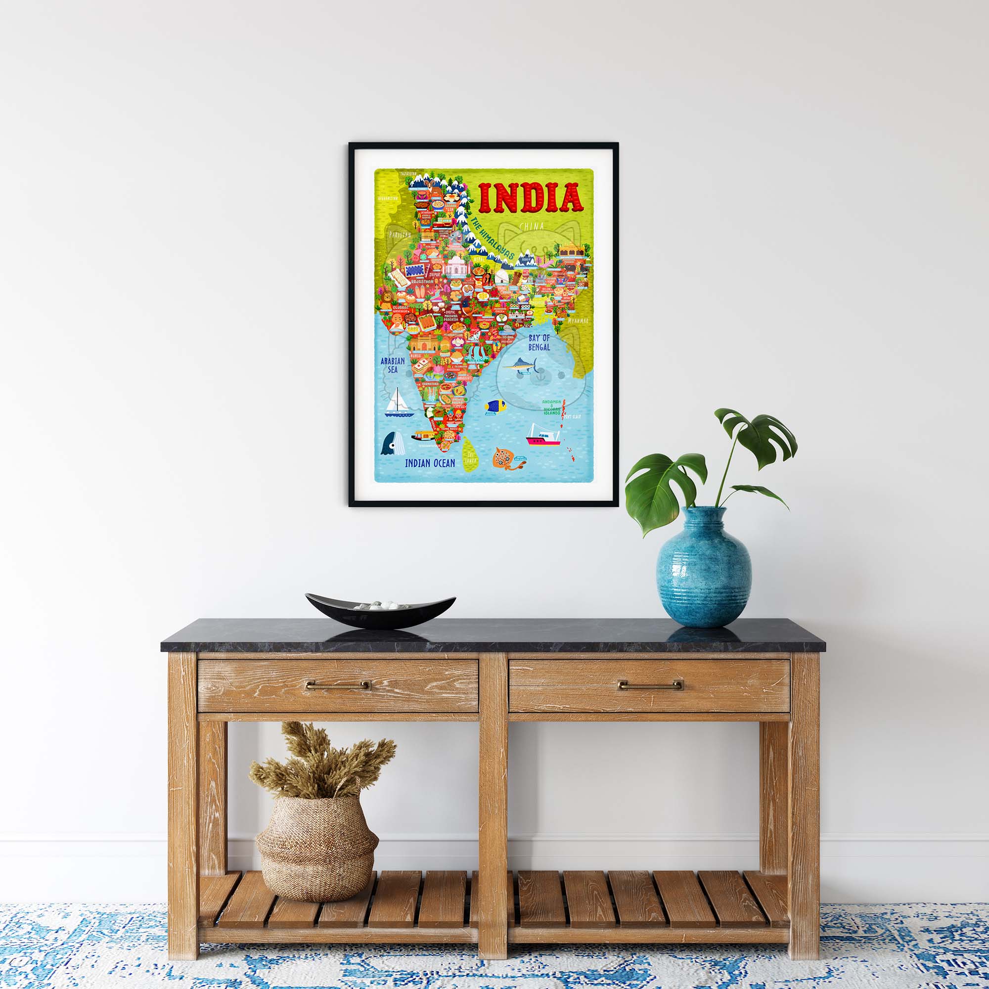 The standard size for this India Map Poster Wall Art Print Illustration is A4, but I have also added many variations to include different image sizes. Everything is printed onto top-quality photo paper and depending on the location the print will be posted flat or in a photo tube. Please note this doesn’t include a frame.