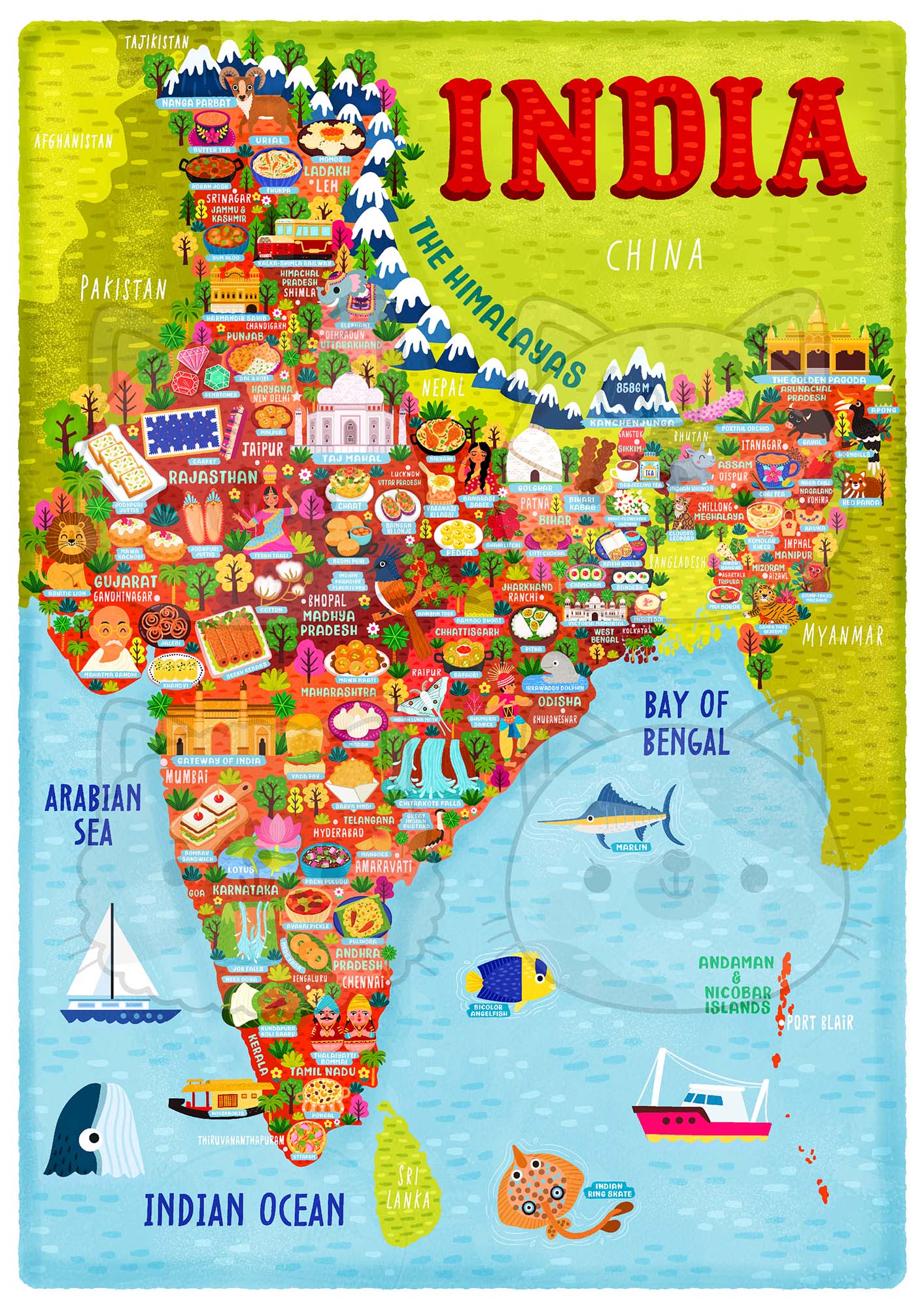 India map poster | Fun Illustrated map of India