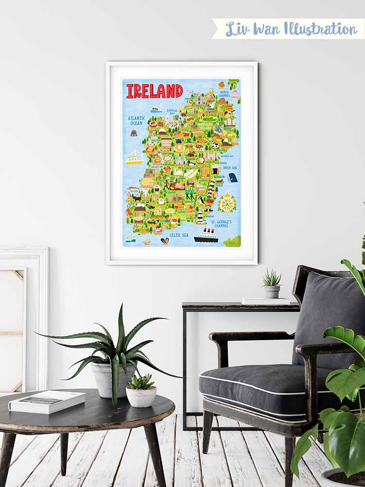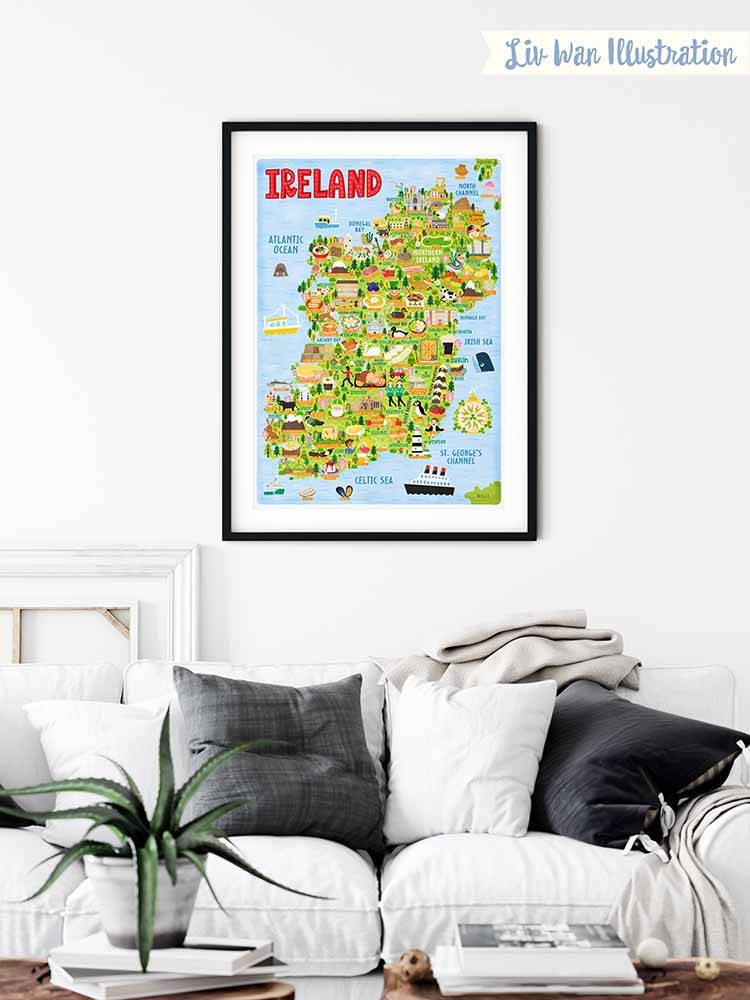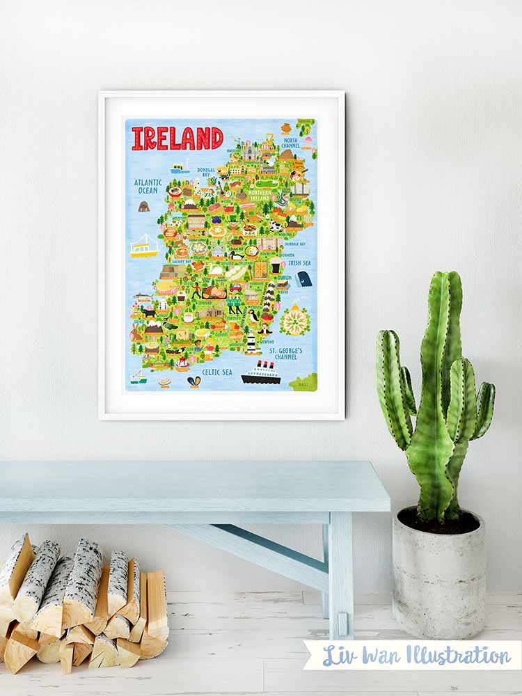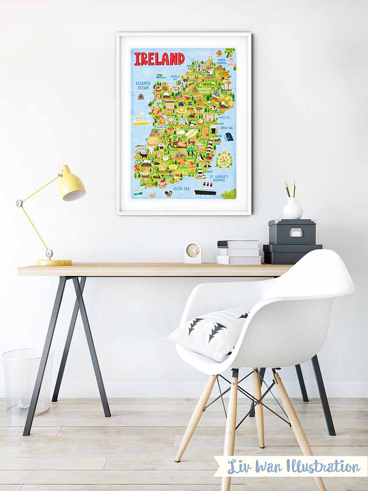 If you really want to see this Ireland map in a print I would highly recommend going for at least A3 in size. This isn’t me just wanting to make money, it’s because there’s a lot of detail which looks great when printed large. The print in the photo above is A3 in size.