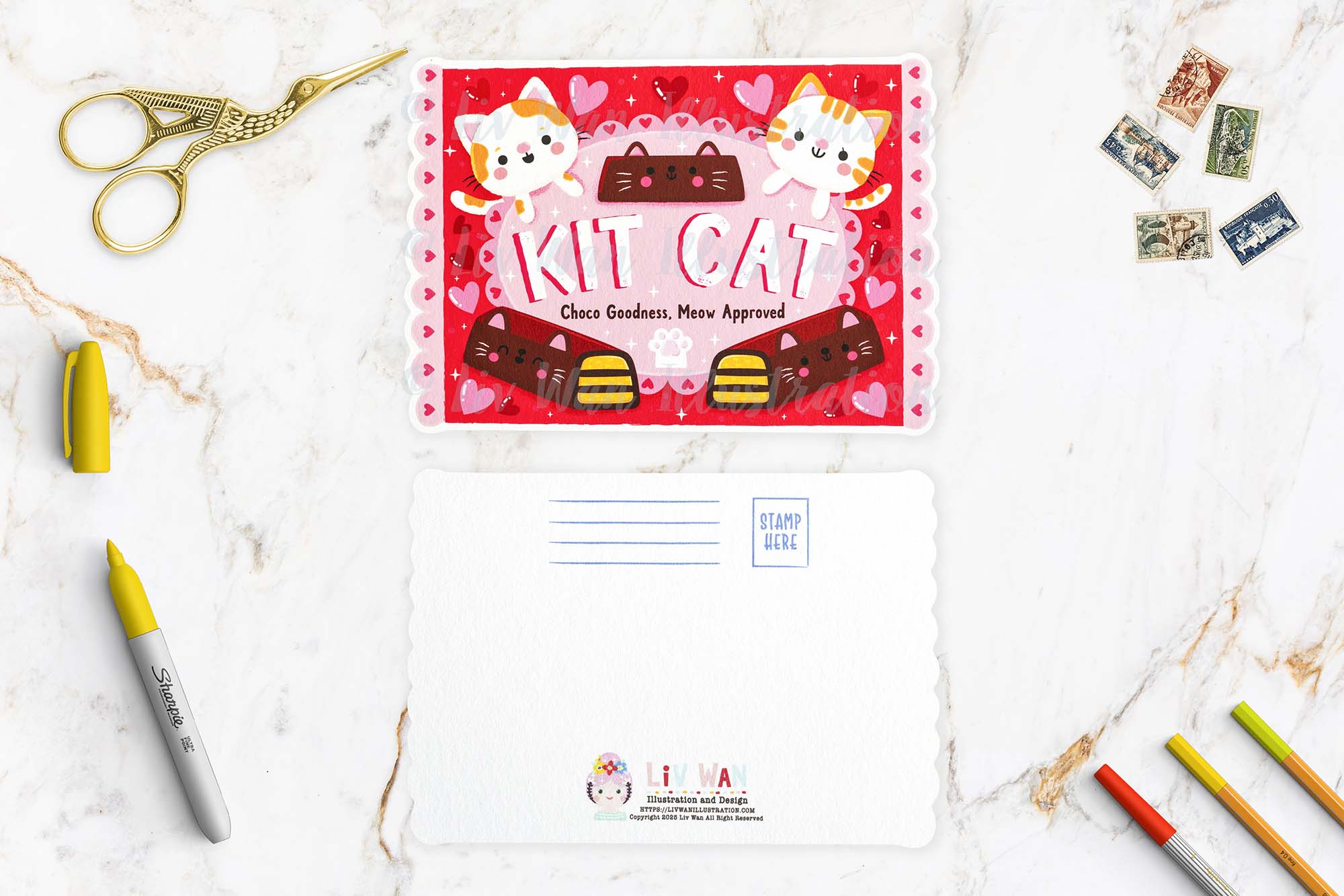 Kit Kat Postcard. Everyone in my family loves a good cookie and biscuit, so new for 2025 I have created a brand new 15-card postcard collection called I Love Cookies. This Kit Kat Postcard is one of the postcards from this collection.