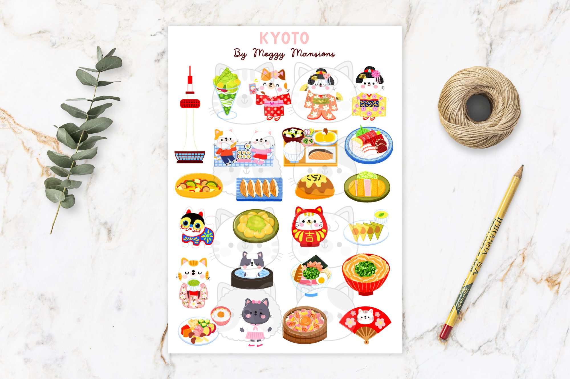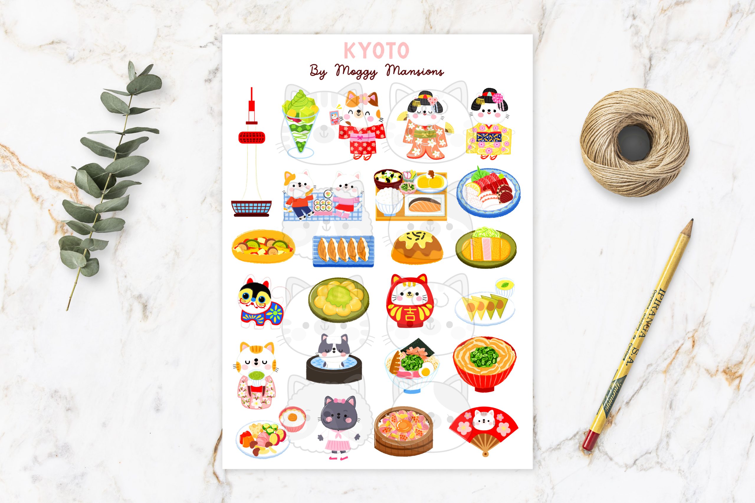 At Moggy Mansions we love everything Japanese and to date have made many Japanese-themed products and have taken part in Japanese themed conventions. To extend our love of everything Japanese, we have created this Kyoto sticker sheet.