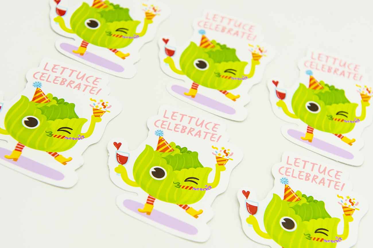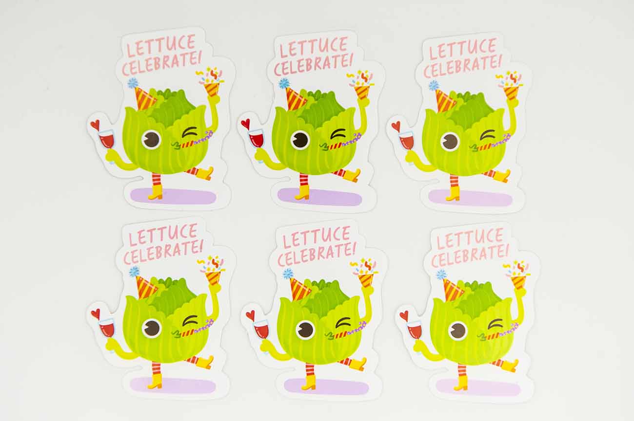 I love a good food pun as much as the next person so I’ve created a whole A-Z of food puns including this Lettuce Celebrate Food Pun Sticker. These were a lot of fun to create and I’m sure you’ll love them as well.