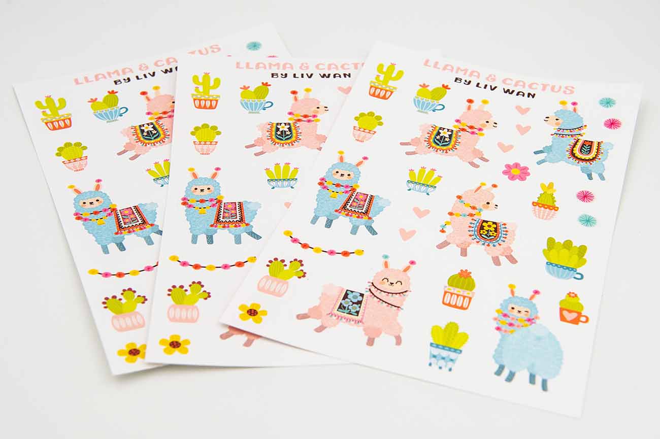 I never really thought about llamas until I visited llama farm in Edinburgh and I absolutely fell in love with them. They were so cute and really quite friendly. Then from doing research about llamas I came across the cactus theme, which is something I’ve always wanted to illustrate. So here is my llama cactus sticker sheet.