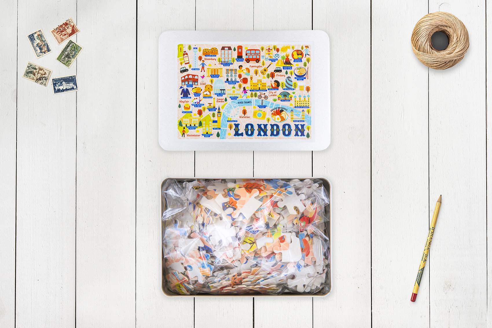 This London Map Jigsaw Puzzle comes supplied in a cute metal tin.
