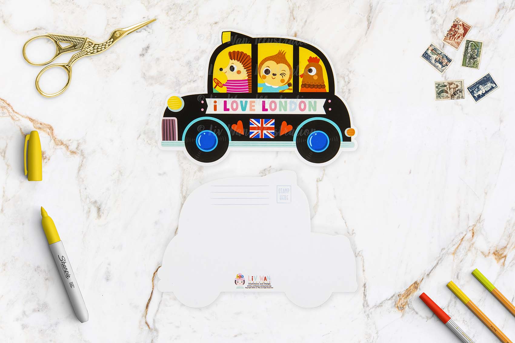 London Taxi Postcard. In late 2022 I moved to London and to celebrate my big move I created an I Love London series of postcards.